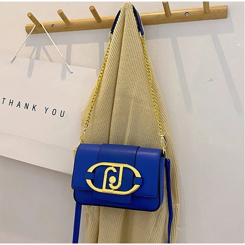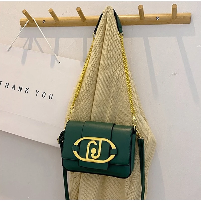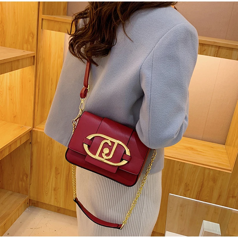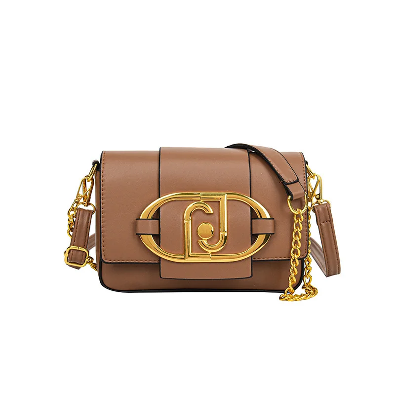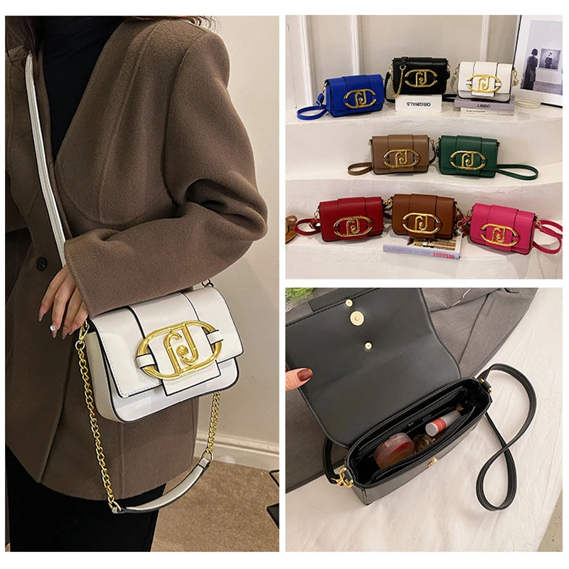 Pochette nera di lusso di fascia alta con patta in pelle, design a catena dorata, irresistibile, squisita borsa a tracolla attraente con fascino alla moda