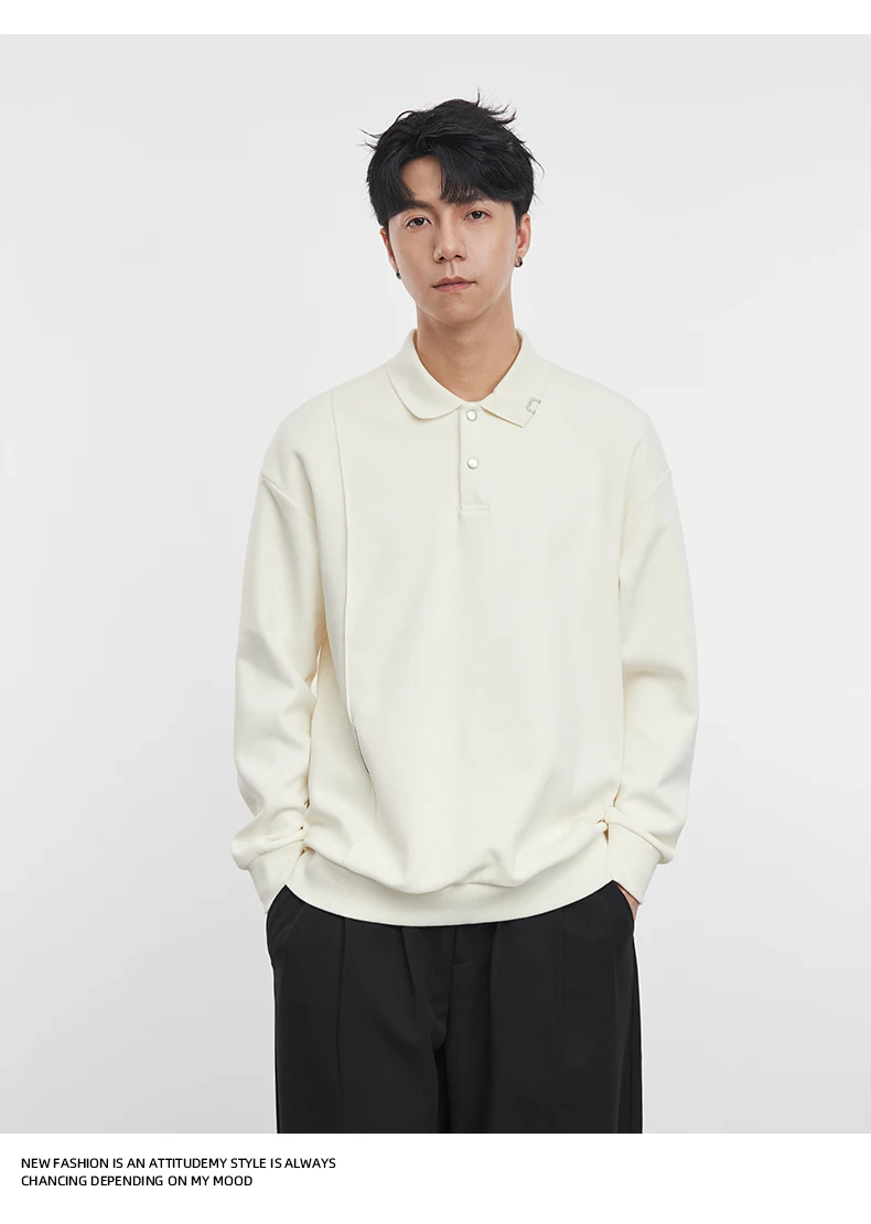 Polo americana a maniche lunghe pesante da uomo 2025 Polo da uomo a maniche lunghe casual con risvolto di nuova moda autunno inverno 2025