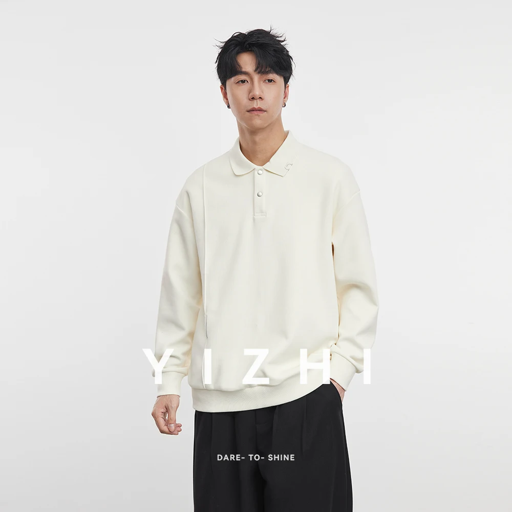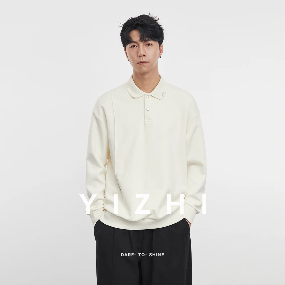 Polo americana a maniche lunghe pesante da uomo 2025 Polo da uomo a maniche lunghe casual con risvolto di nuova moda autunno inverno 2025