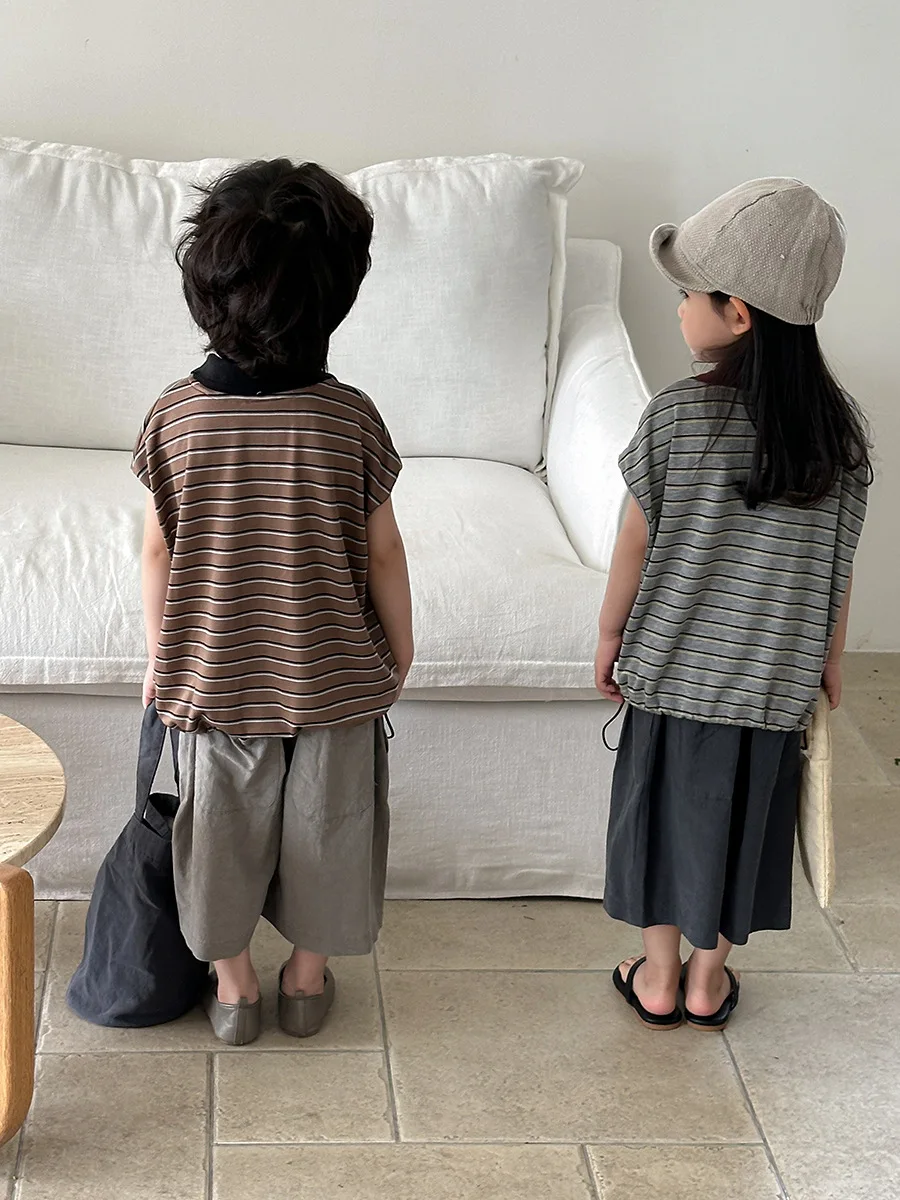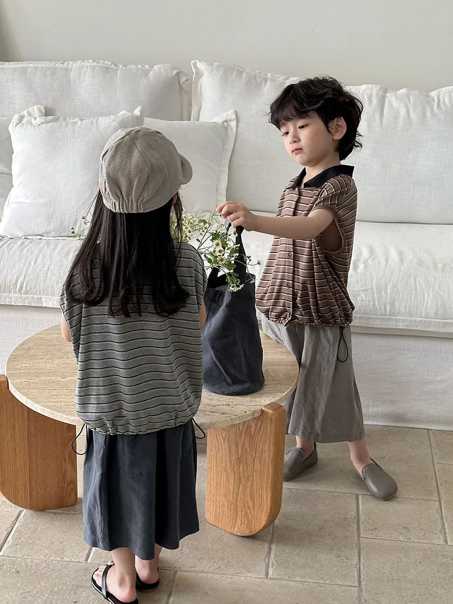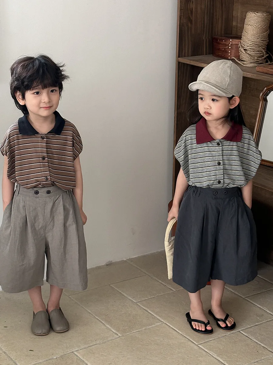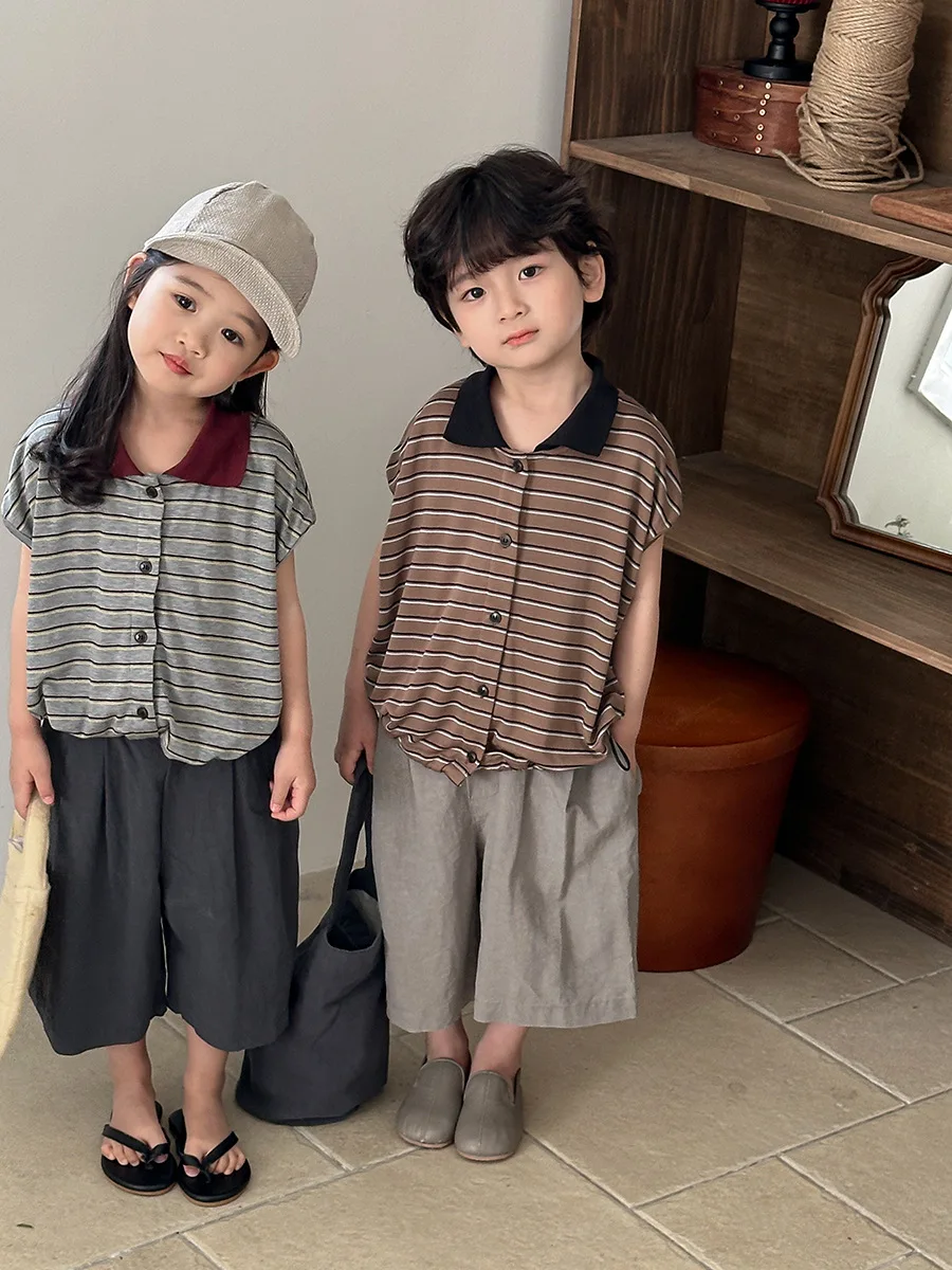 Polo per ragazzi e ragazze 2025 estate per bambini nuova maglietta a maniche corte a righe Mori top retrò estate 80-140 cm