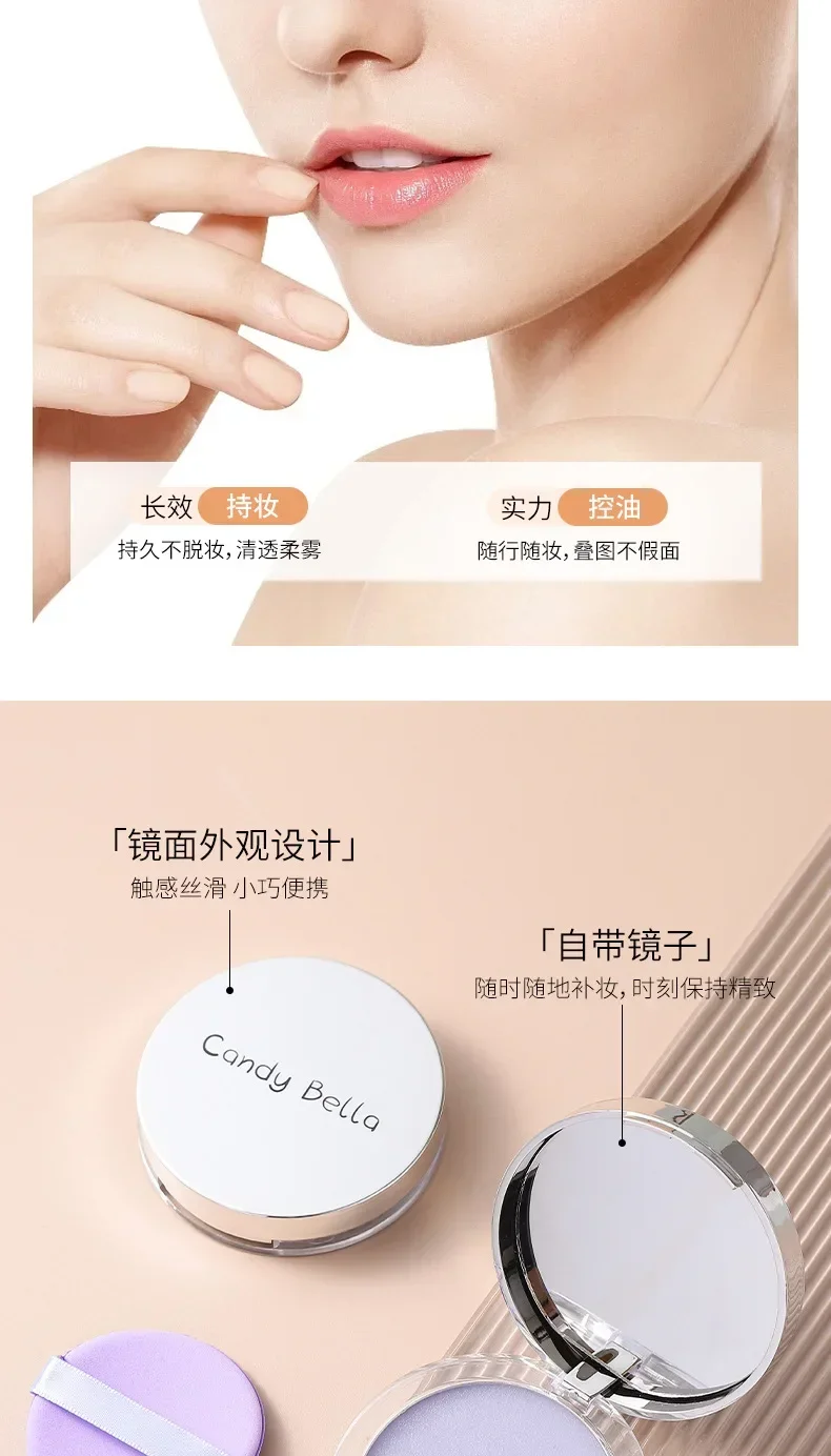 Polvere fissante viola per il viso Polvere snellente a lunga durata per il controllo dell’olio Pelle delicata sulla pelle Trucco naturale Cosmetici coreani