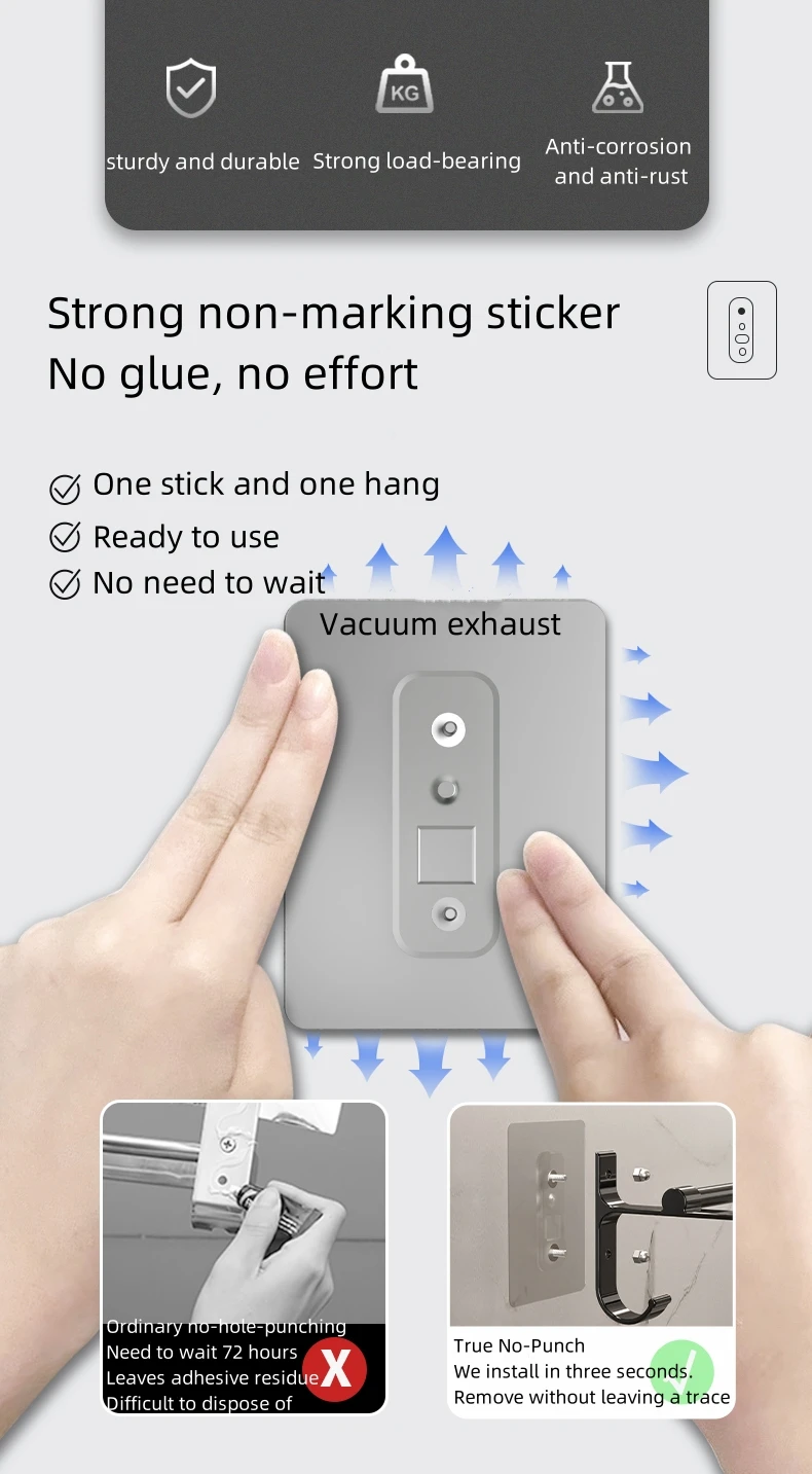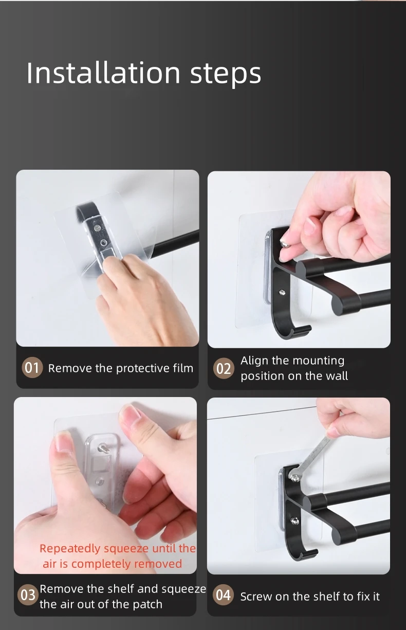 2. Installazione senza trapano: questo portasciugamani presenta una installazione senza trapano, facile da montare su qualsiasi parete senza comprendere l’integrità dell’arredamento del bagno.