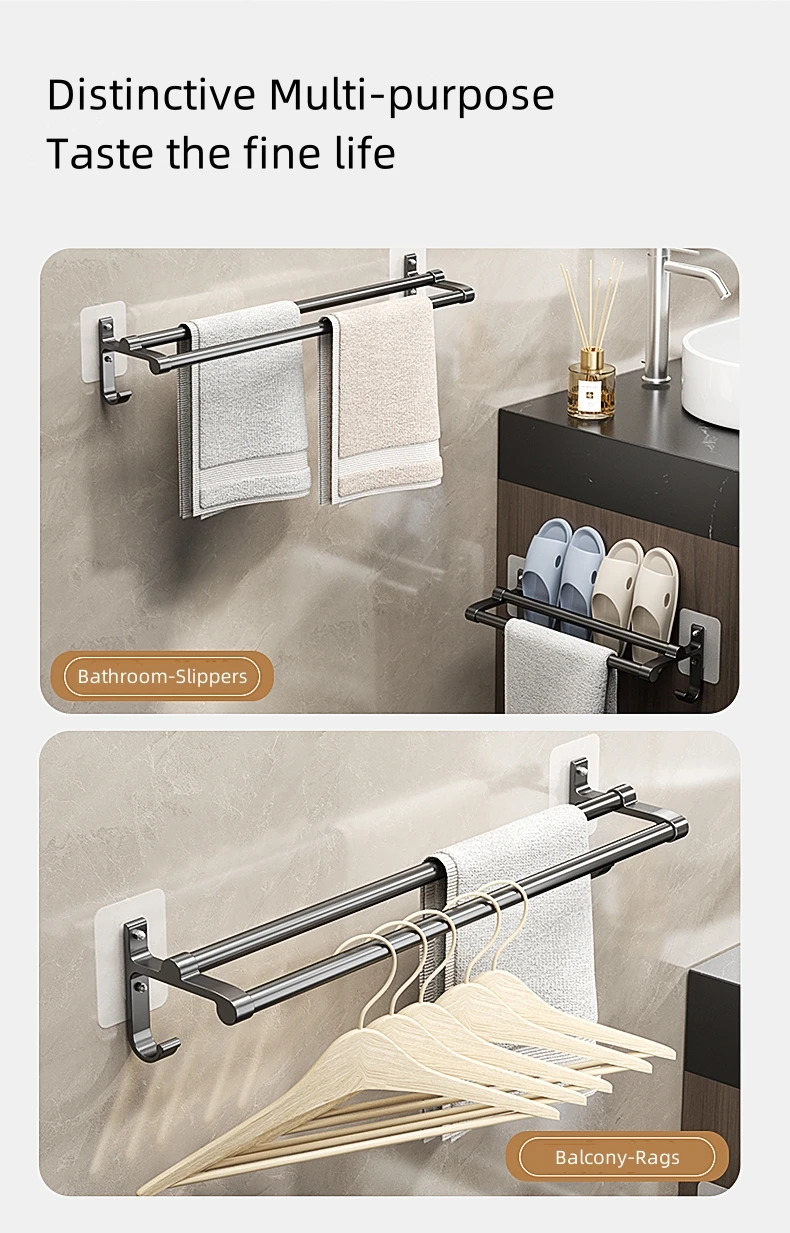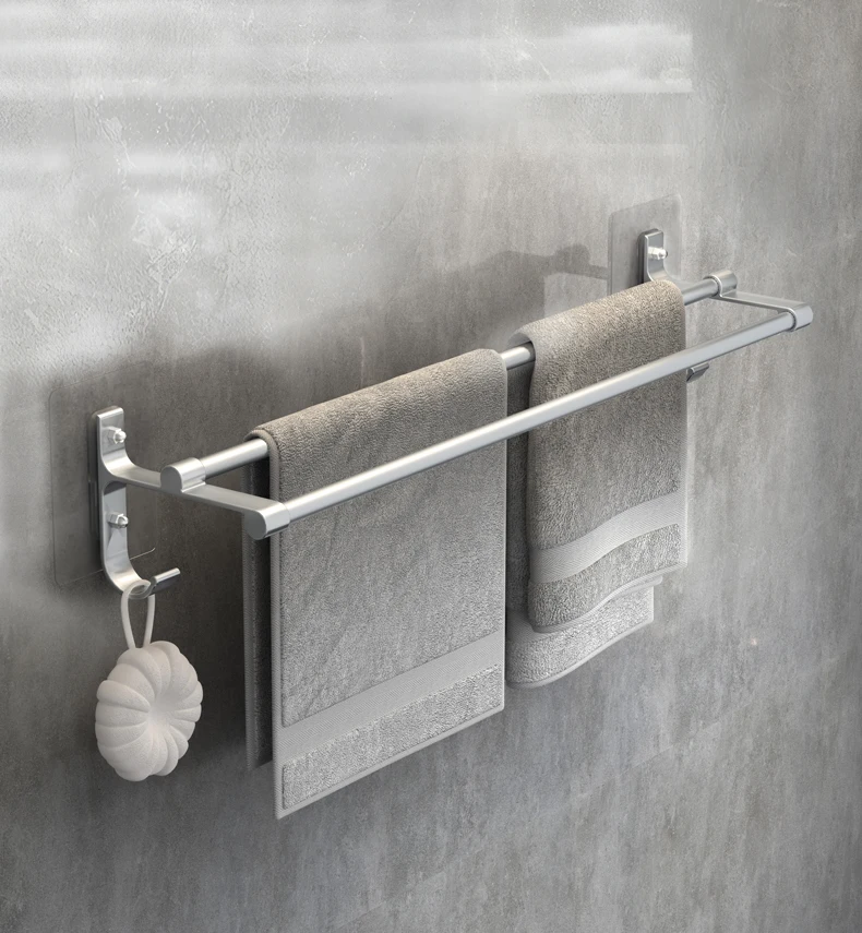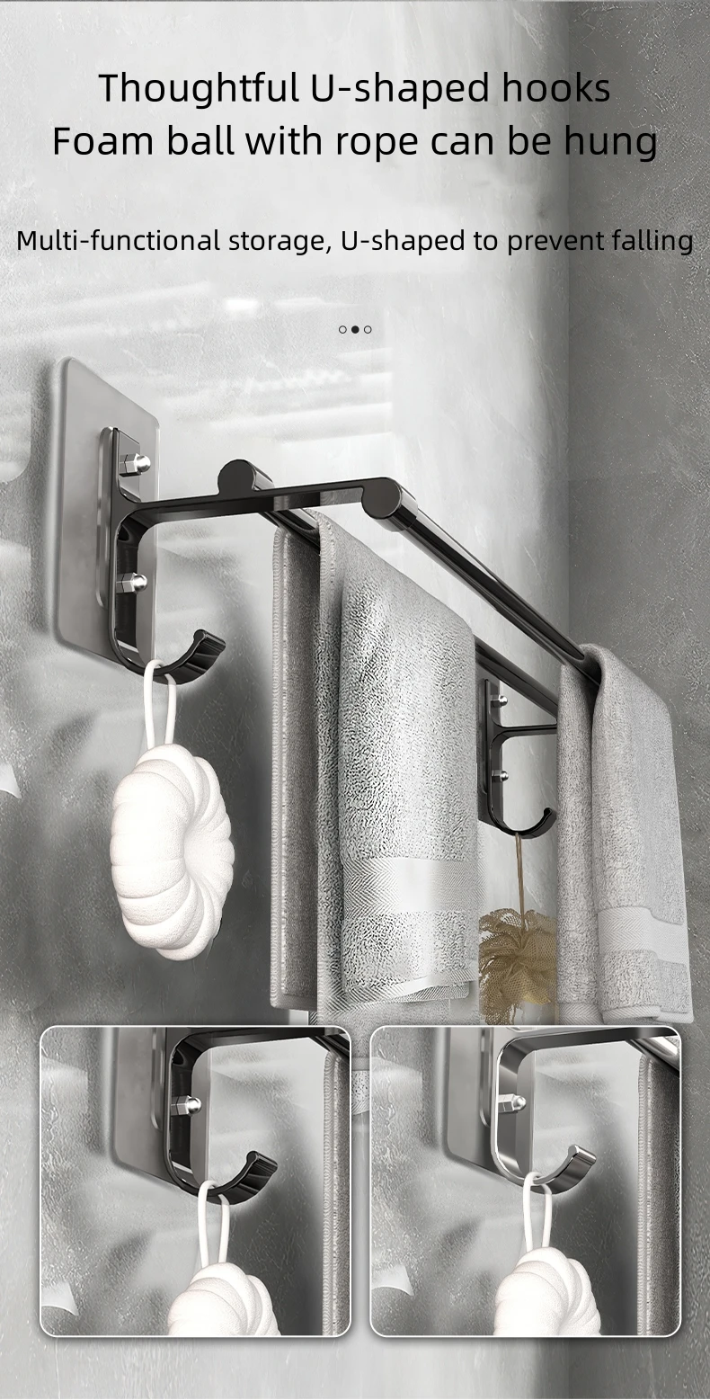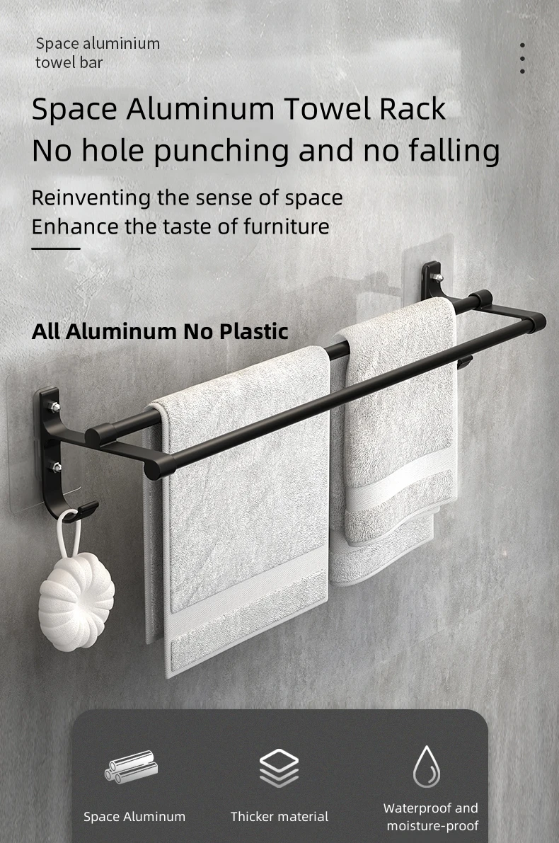 Porta asciugamani in alluminio spaziale senza trapano Porta asciugamani da bagno Forniture per il bagno Organizzatore e accessori Porta asciugamani