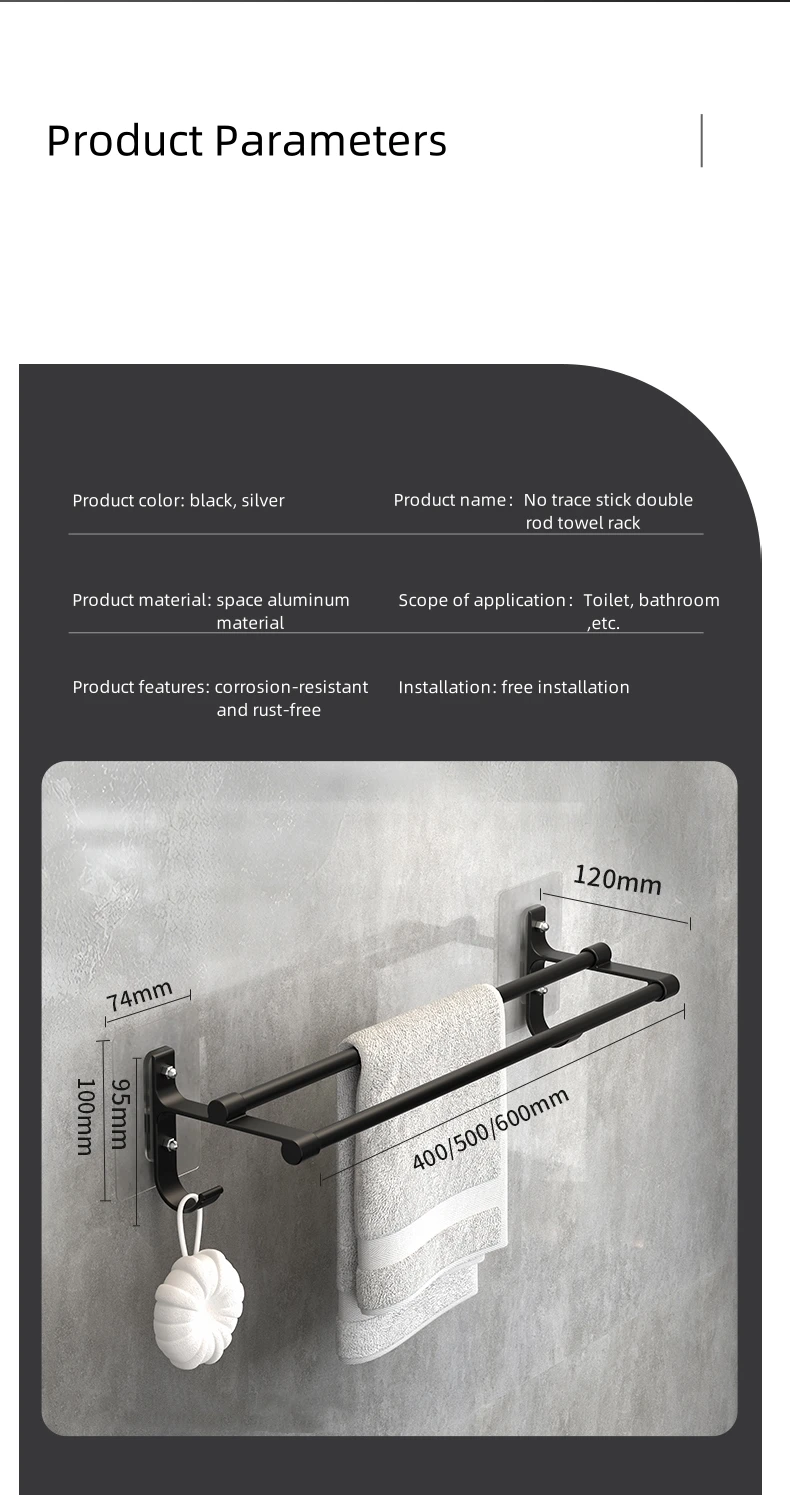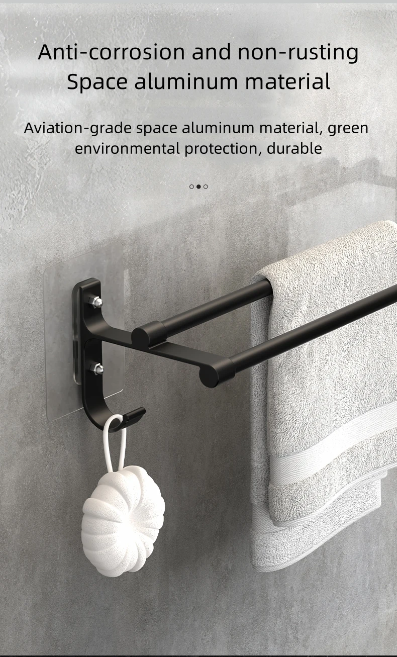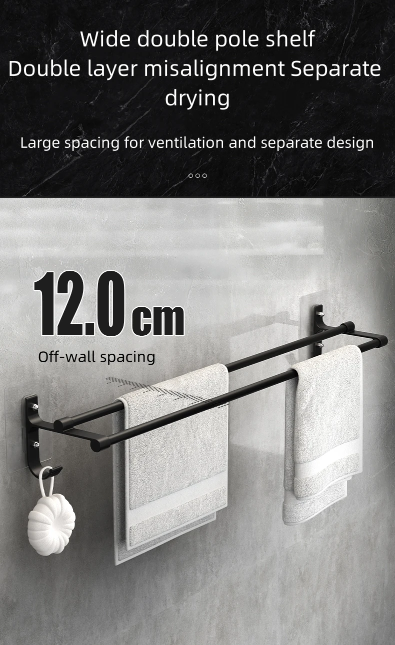 Porta asciugamani in alluminio spaziale senza trapano Porta asciugamani da bagno Forniture per il bagno Organizzatore e accessori Porta asciugamani