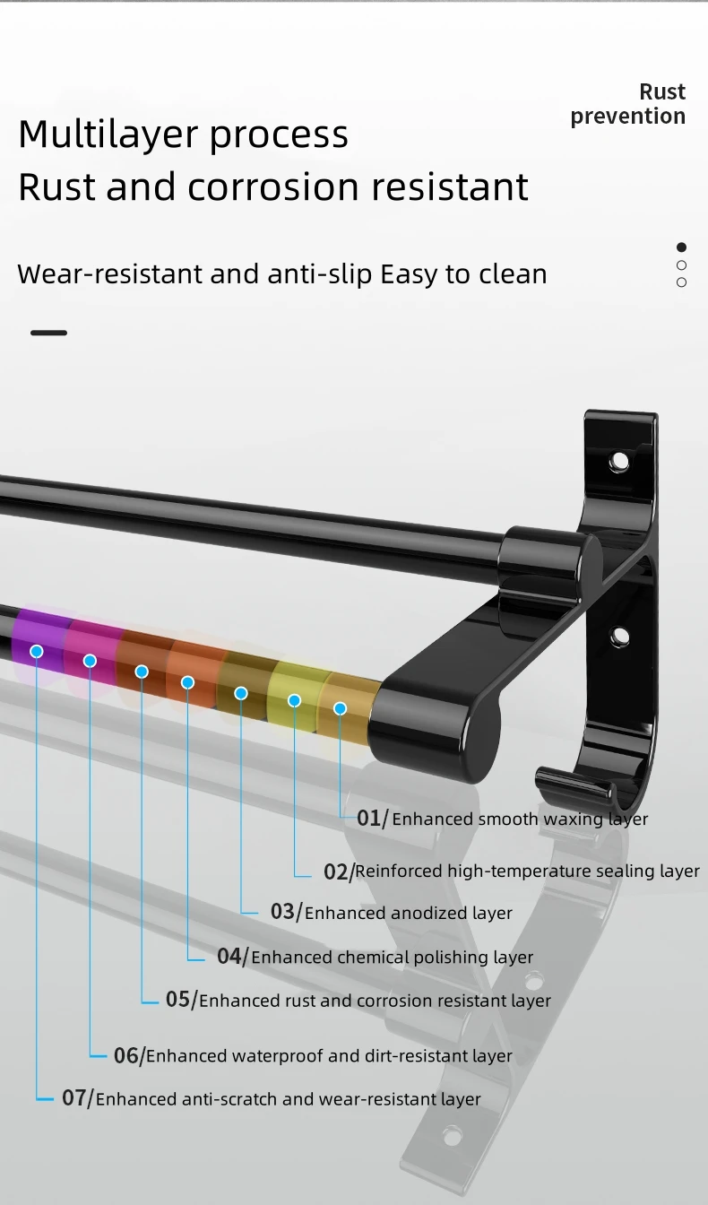 3.Uso versatile: Con il suo design a barra orizzontale, questo scaffale è perfetto per tenere asciugamani, utensili e altri piccoli oggetti in bagno o cucina, maximizzare lo spazio.