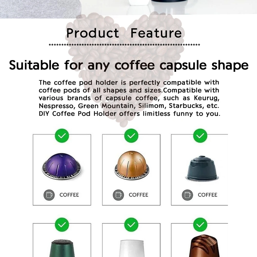Compatibile con varie marche di caffè in capsule, come Keurug, Nespresso, Green Mountain, Silimom, Starbucks, ecc.Il porta cialde di caffè fai-da-te offre un divertente illimitato per te.