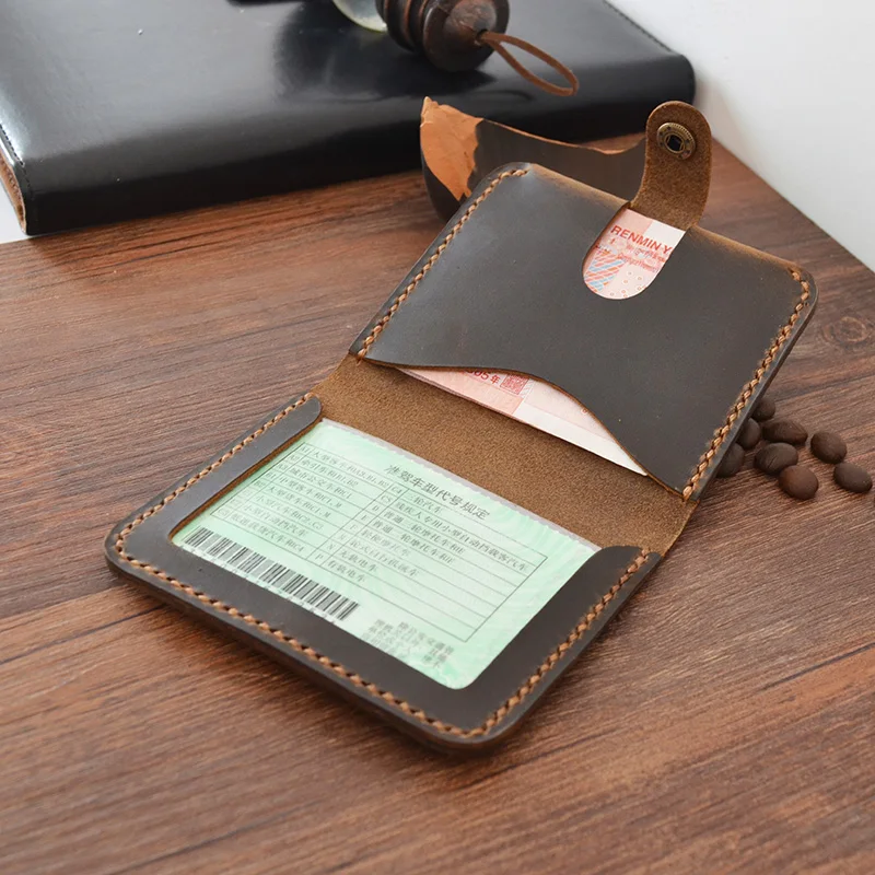 Porta carte d’identità da uomo di lusso fatto a mano Crazy horse in vera pelle Porta carte d’identità Porta carte di buiness Regalo di compleanno.