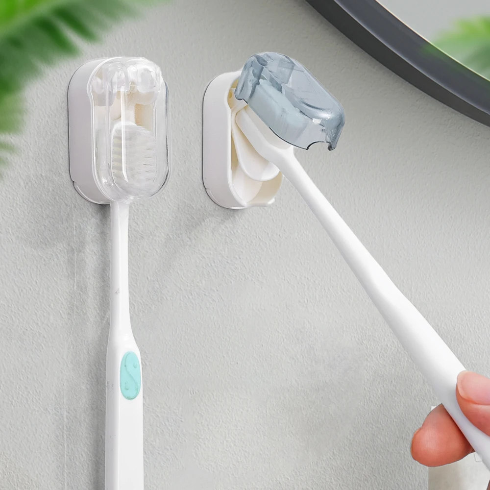 Porta spazzolino da 1-5 pezzi con coperchio Porta spazzolino da parete senza punzonatura Portaoggetti da bagno autoadesivo senza polvere