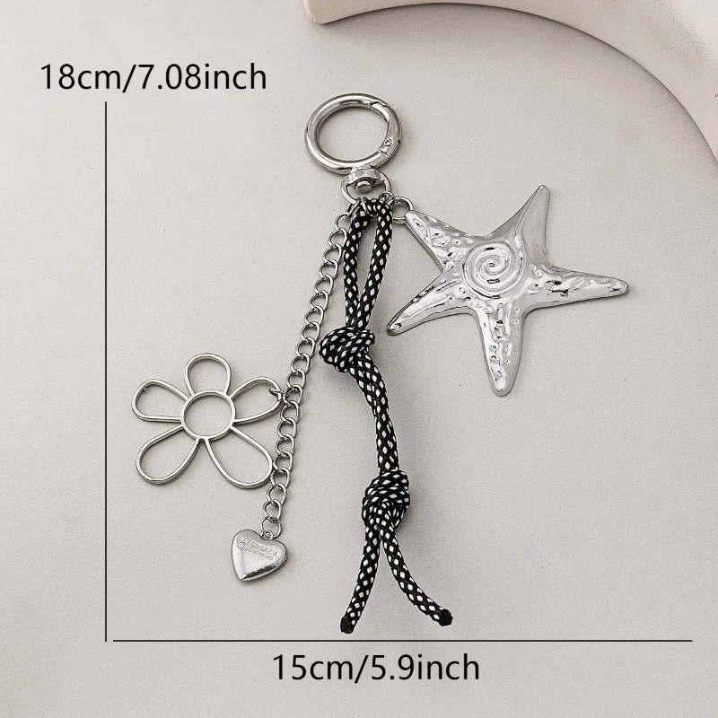 Portachiavi moda Punk Y2K Stella marina Portachiavi geometrici Borsa da donna Ciondolo Gingillo Portachiavi per auto da ragazza Anello Accessori a catena