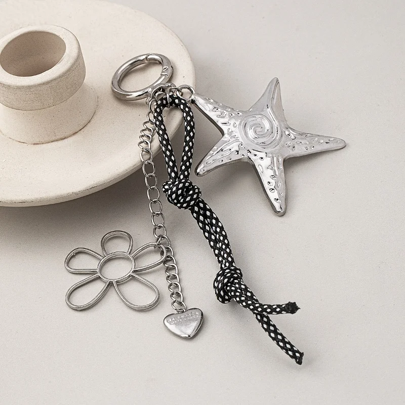 Portachiavi moda Punk Y2K Stella marina Portachiavi geometrici Borsa da donna Ciondolo Gingillo Portachiavi per auto da ragazza Anello Accessori a catena