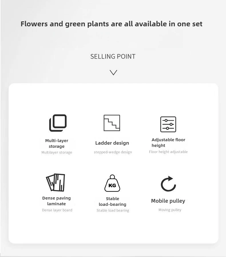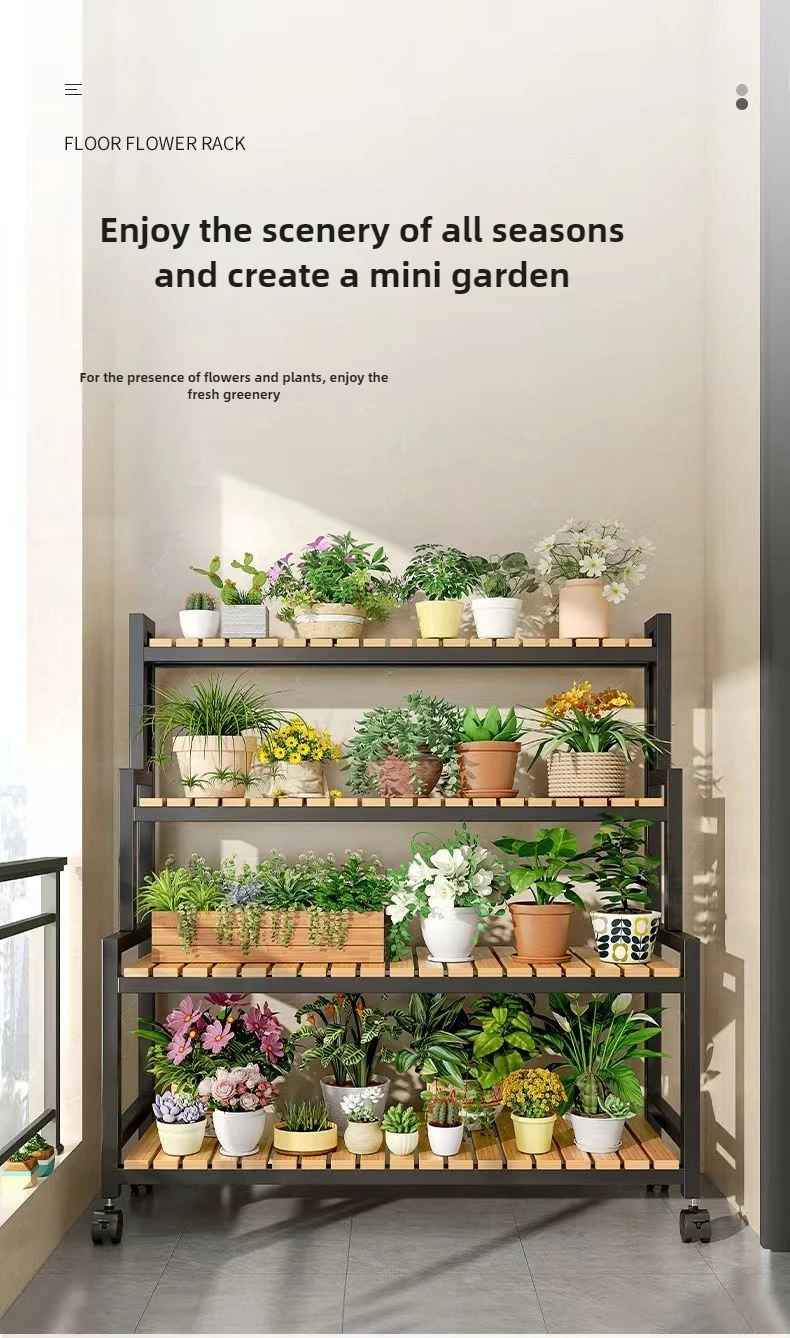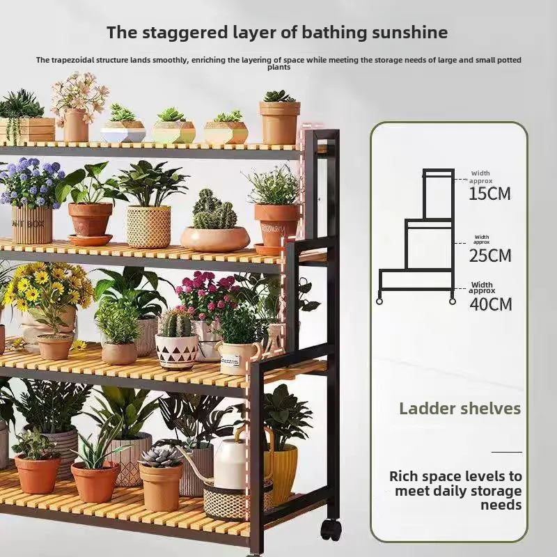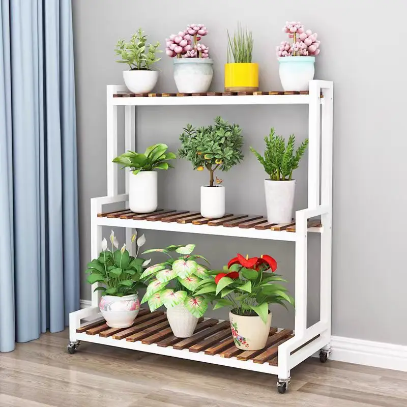 Portafiori multistrato in legno massello con ruote mobili per uso domestico da balcone