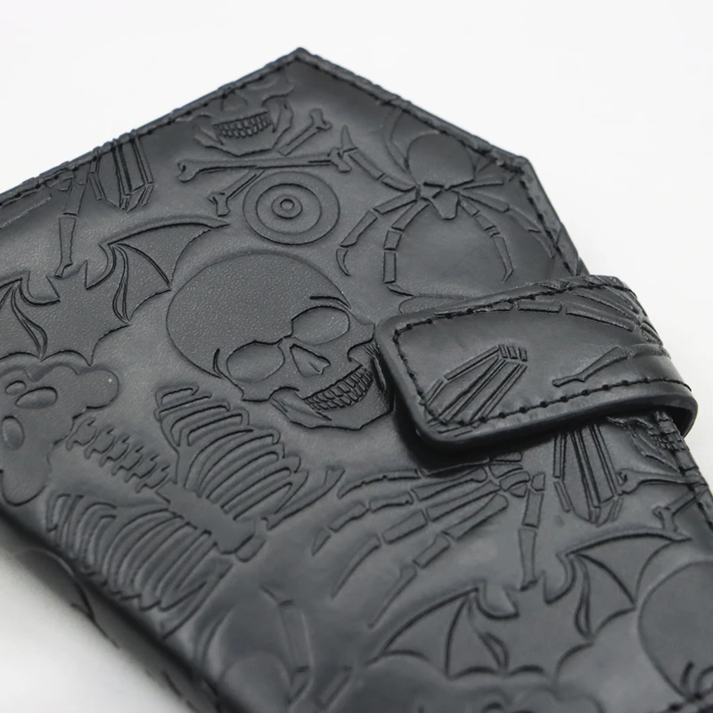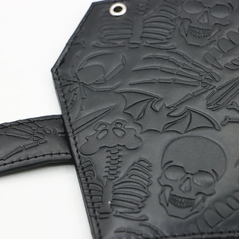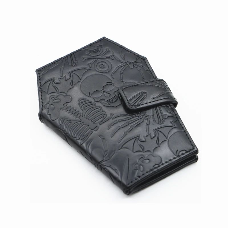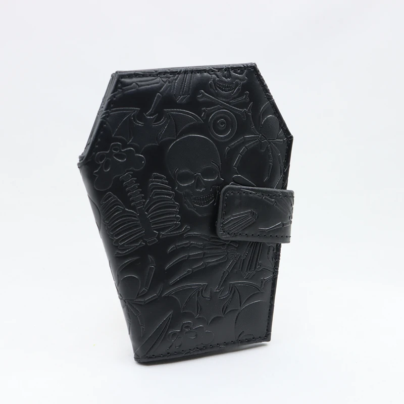 Portafoglio con bara con teschio in rilievo vintage gotico spooky scuro Portafoglio in PU con pochette modello Halloween