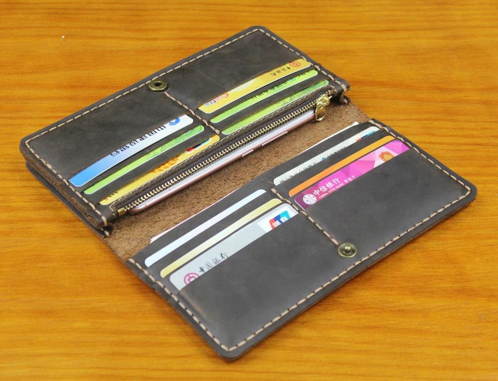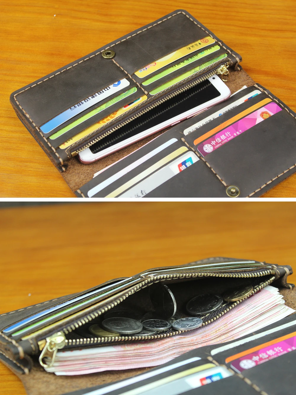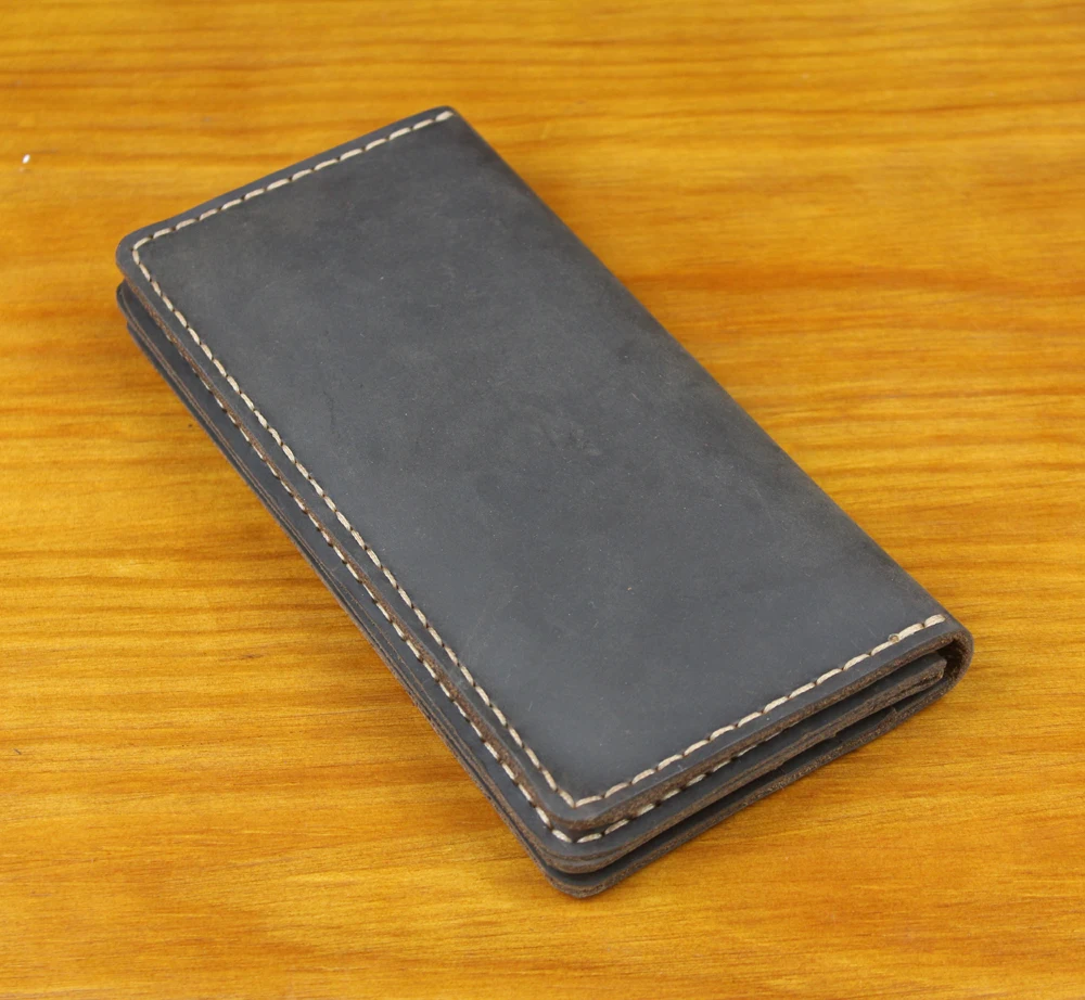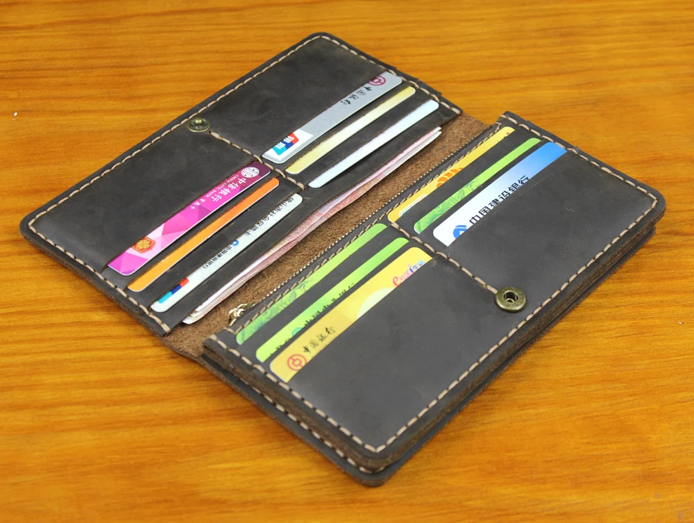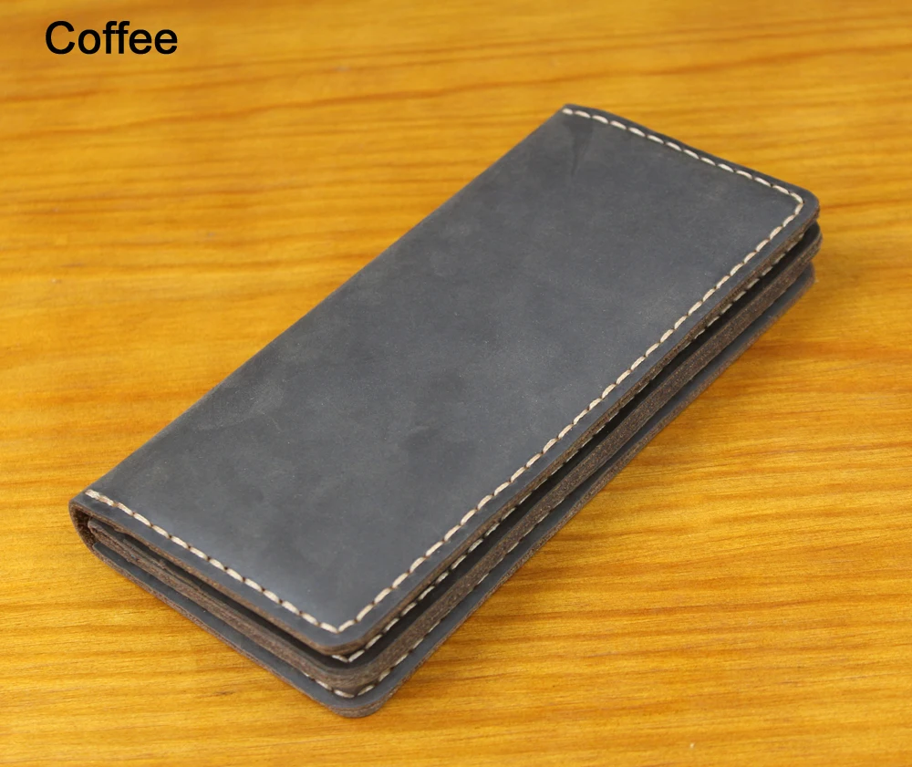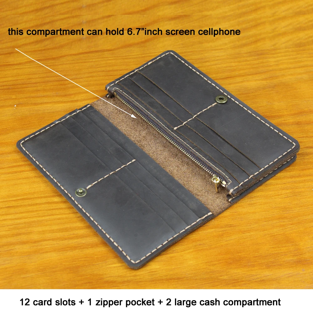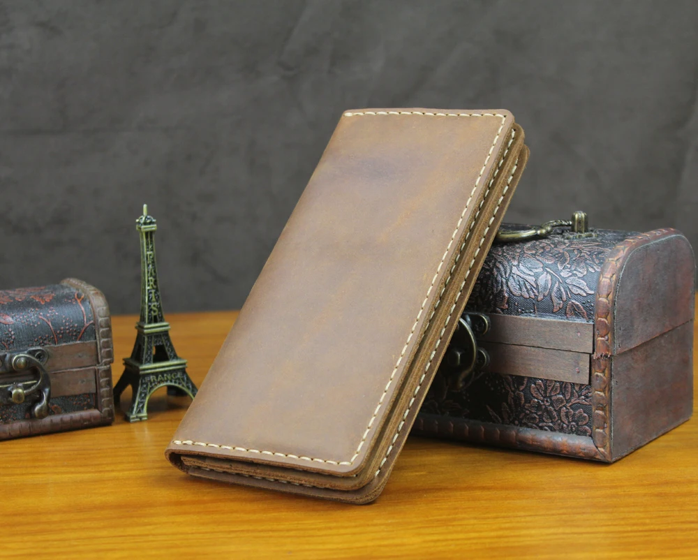 Portafoglio lungo da uomo in vera pelle fatto a mano di lusso, portamonete bifold, pochette con fermasoldi