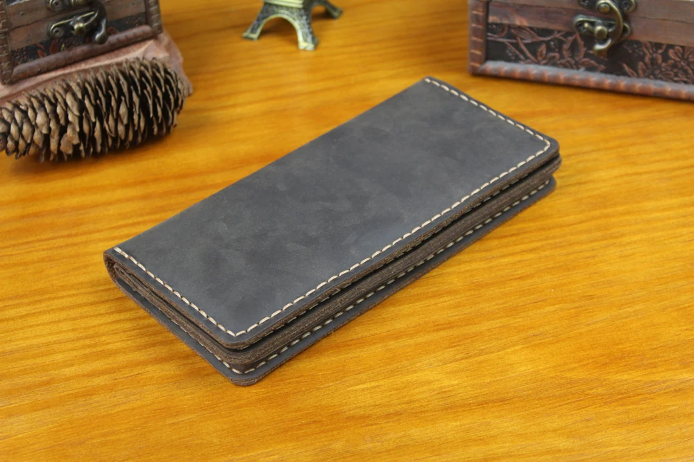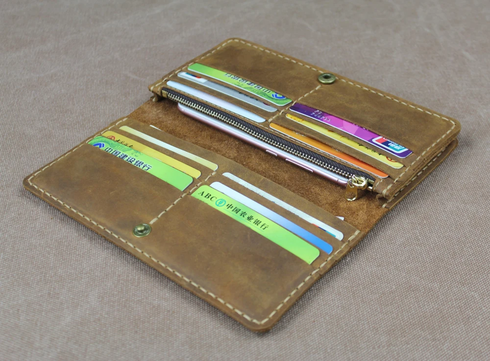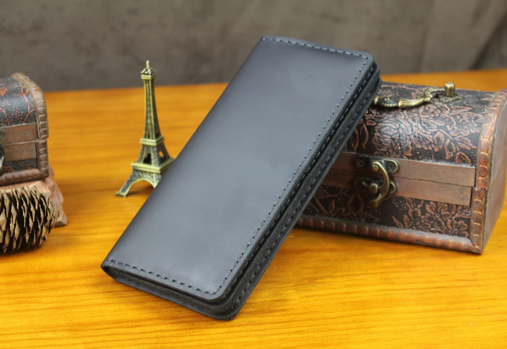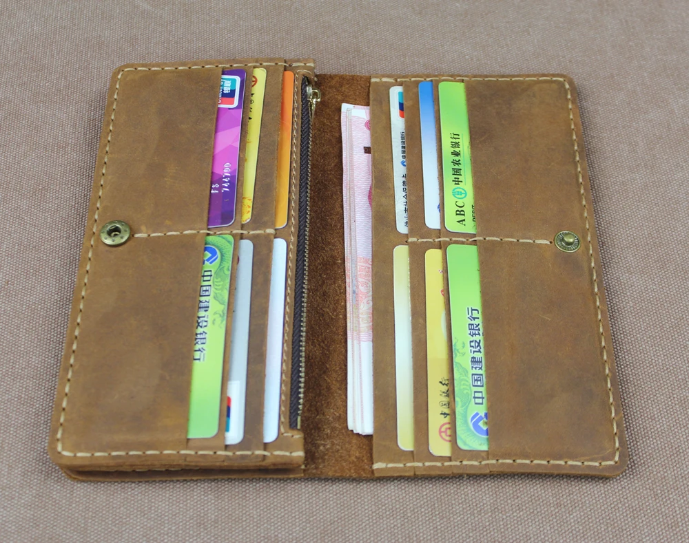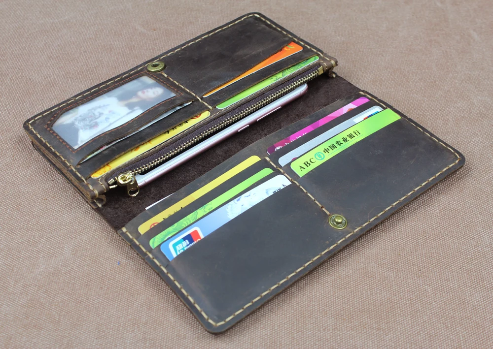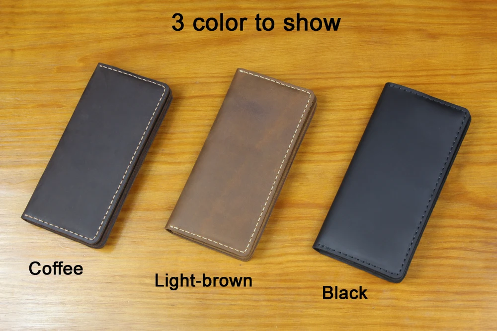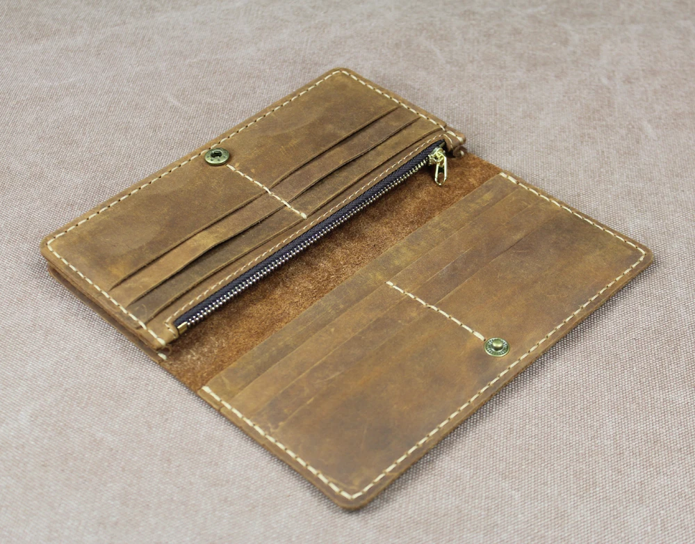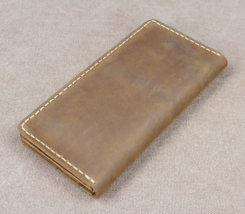 Portafoglio lungo da uomo in vera pelle fatto a mano di lusso, portamonete bifold, pochette con fermasoldi