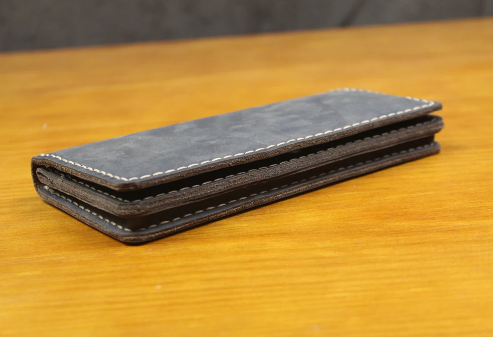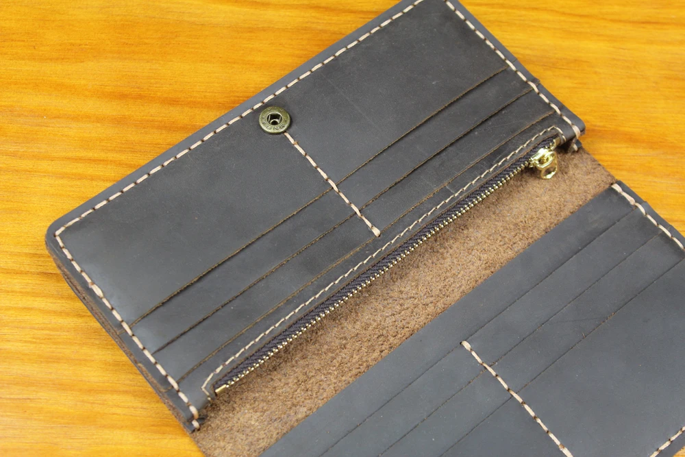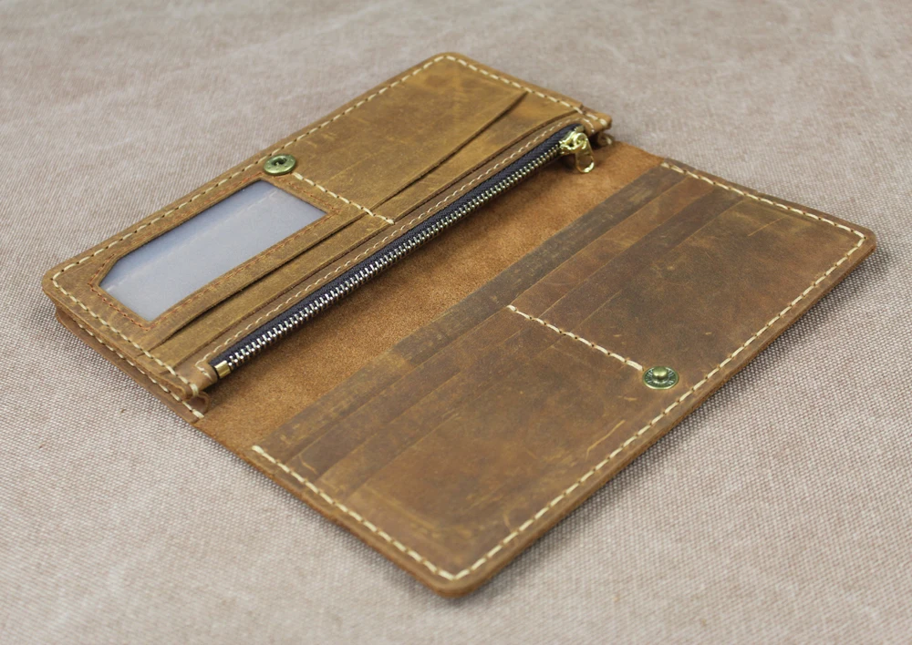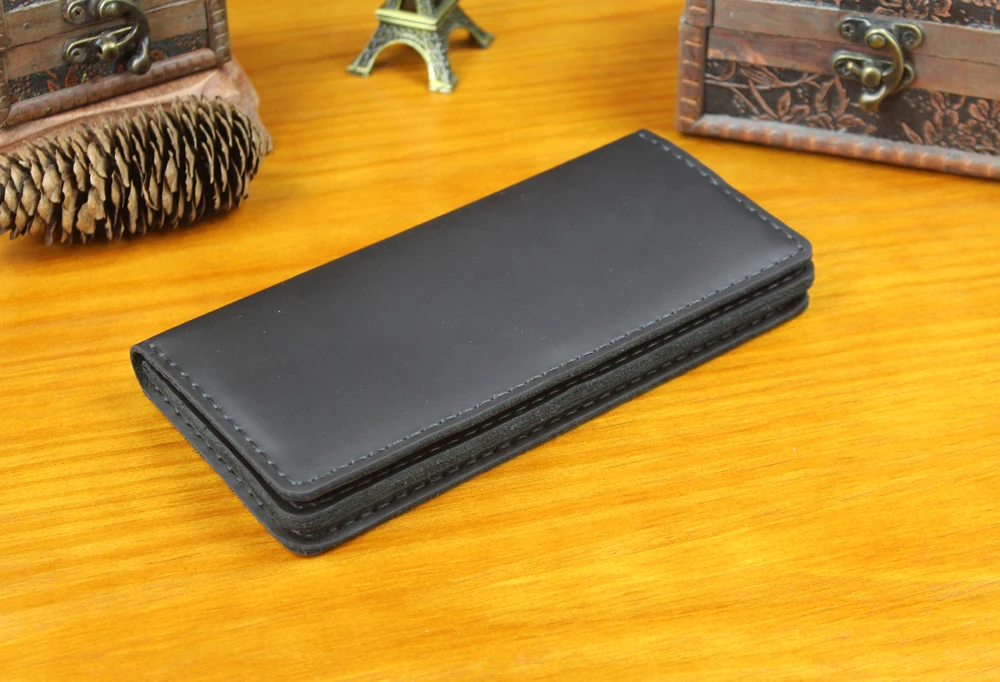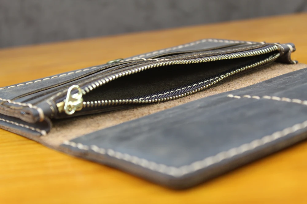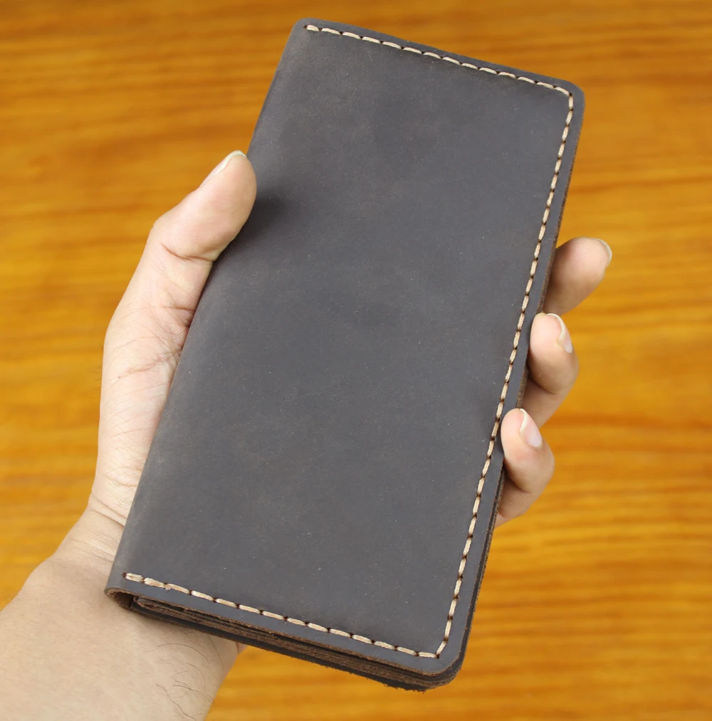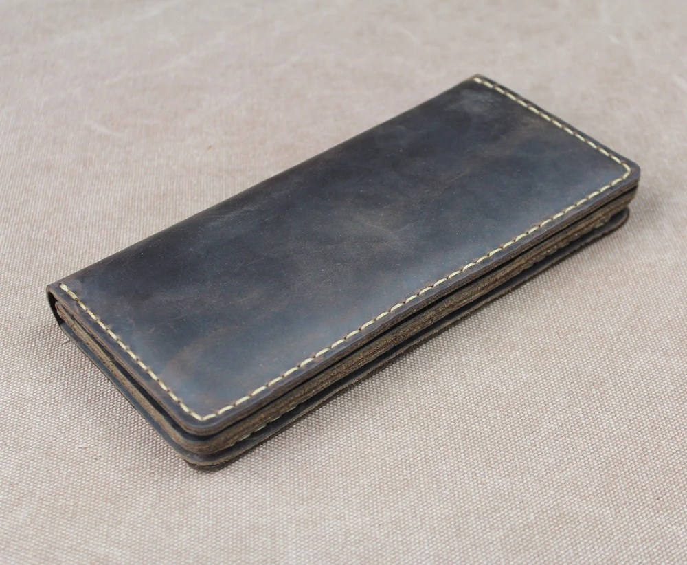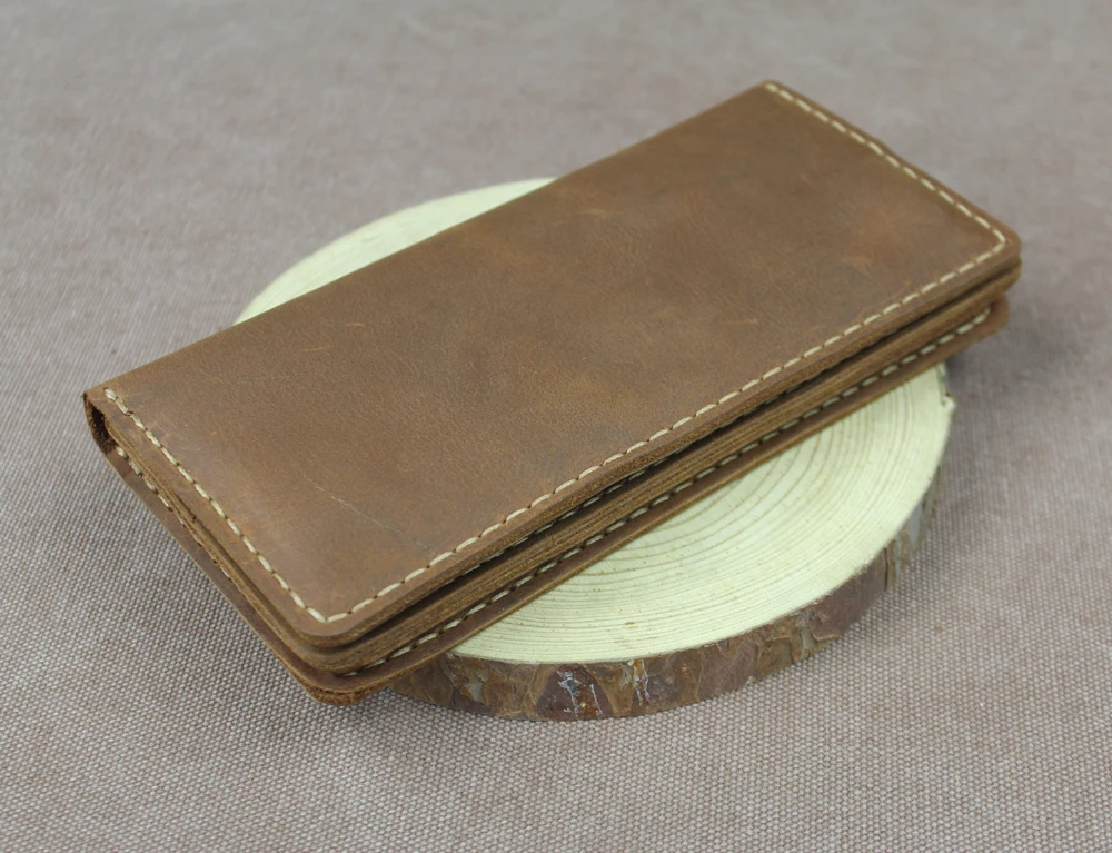 Portafoglio lungo da uomo in vera pelle fatto a mano di lusso, portamonete bifold, pochette con fermasoldi