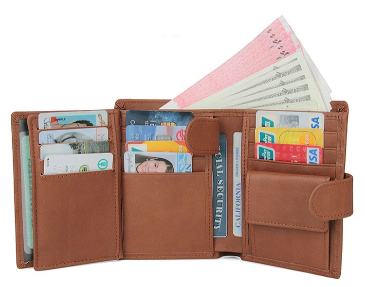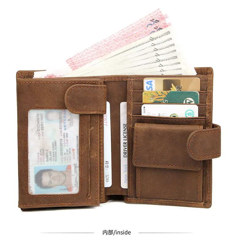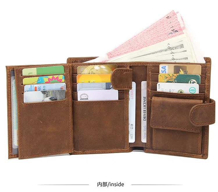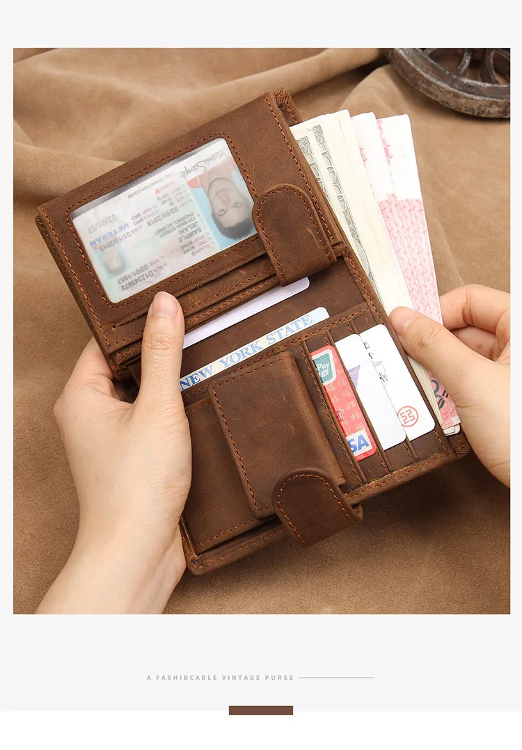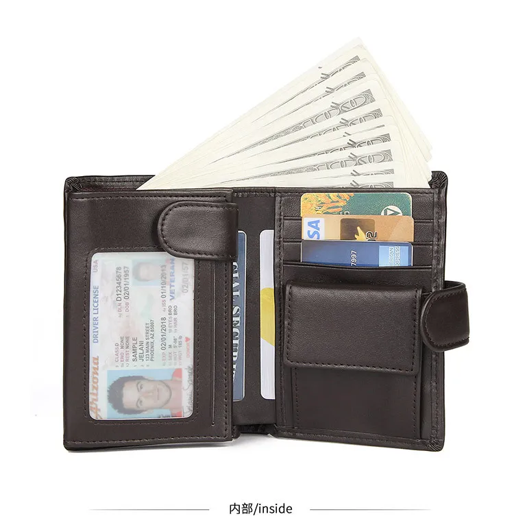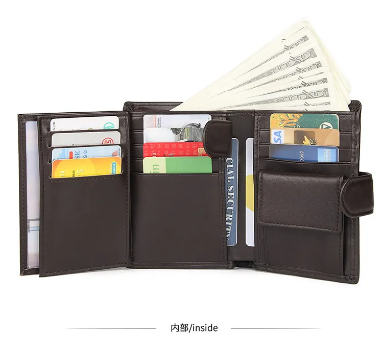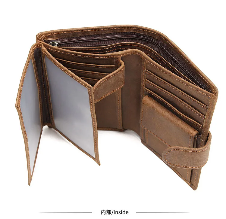 Portafoglio portamonete retrò Portafoglio in vera pelle Borsa per carte tre pieghe da uomo Portafoglio corto da uomo in pelle bovina Protezione RFID
