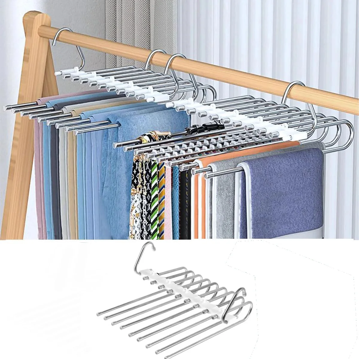 Portapantaloni pieghevole in acciaio inossidabile lucido Portapantaloni multistrato Appendiabiti Strumento di archiviazione Gancio Dispositivo di archiviazione per guardaroba