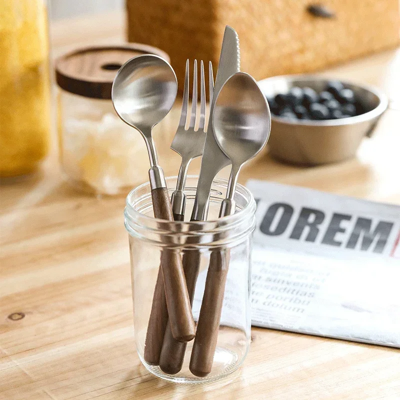 Posate con manico in legno di noce 304 stoviglie in acciaio inossidabile coltello da cucina forchetta cucchiaio Set di stoviglie Set di stoviglie da ristorante 1Posate con manico in legno di noce 304 stoviglie in acciaio inossidabile coltello da cucina forchetta cucchiaio Set di stoviglie Set di stoviglie da ristorante