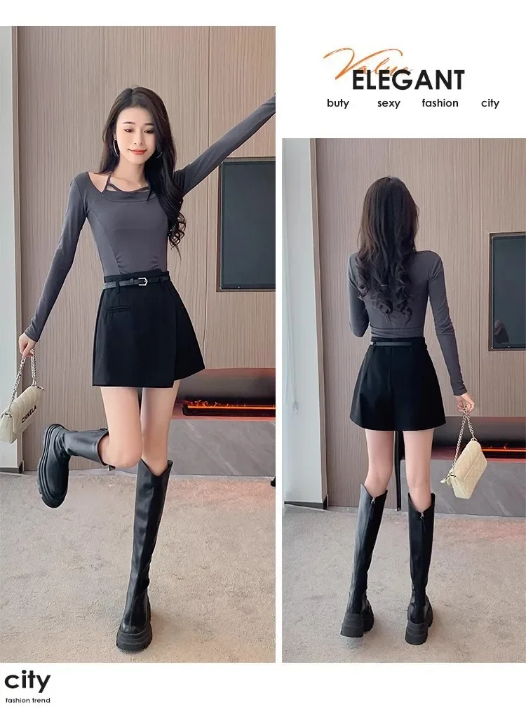 Primavera 2025 New Fashion Vita alta A-Line Minigonna Abito da donna Gonna corta Elegante gonna irregolare dimagrante Fibra di poliestere