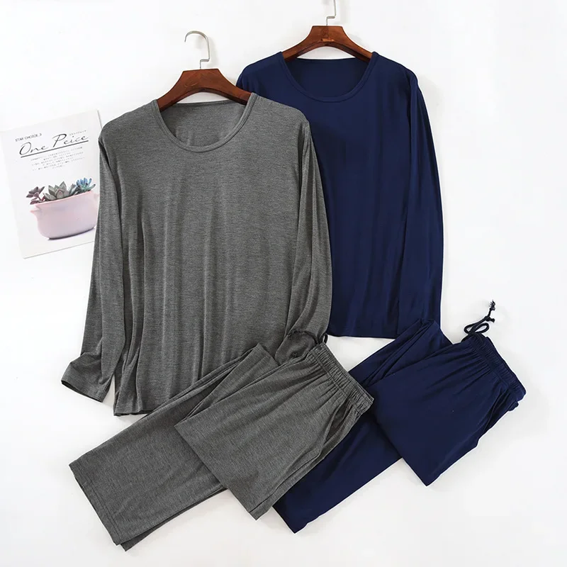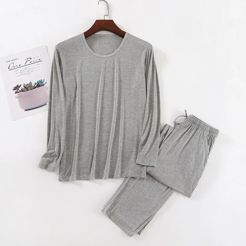 Primavera/Autunno da uomo in viscosa modale sottile manica lunga pantaloni lunghi pigiama pullover top tinta unita 2 pezzi pigiama da uomo 1Primavera/Autunno da uomo in viscosa modale sottile manica lunga pantaloni lunghi pigiama pullover top tinta unita 2 pezzi pigiama da uomo