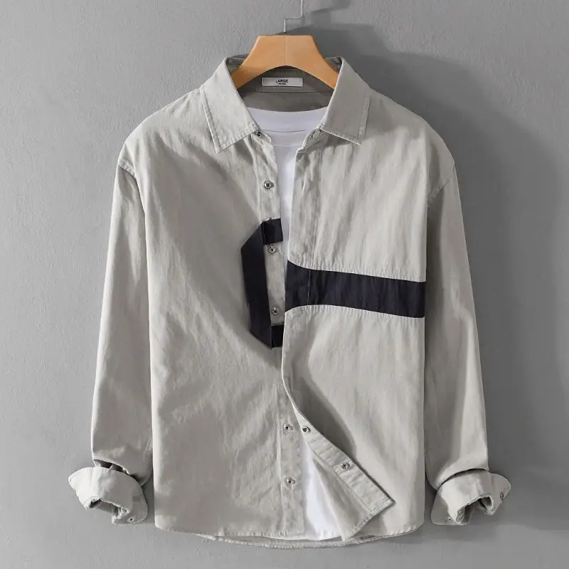 1 recensione per Primavera autunno moda Vintage colletto POLO manica lunga camicetta abbigliamento uomo monopetto Casual allentato semplicità Y2K camicie