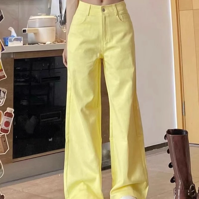 Primavera Autunno Moda Vita alta Jeans con tasche solide Abbigliamento da donna Bottoni casual larghi Tendenza Semplicità Pantaloni dritti coreaniPensa ad un Regalo Unico e Utile per le Persone a te Vicine!! Regala un buono a partire da € 10,00 a € 300,00