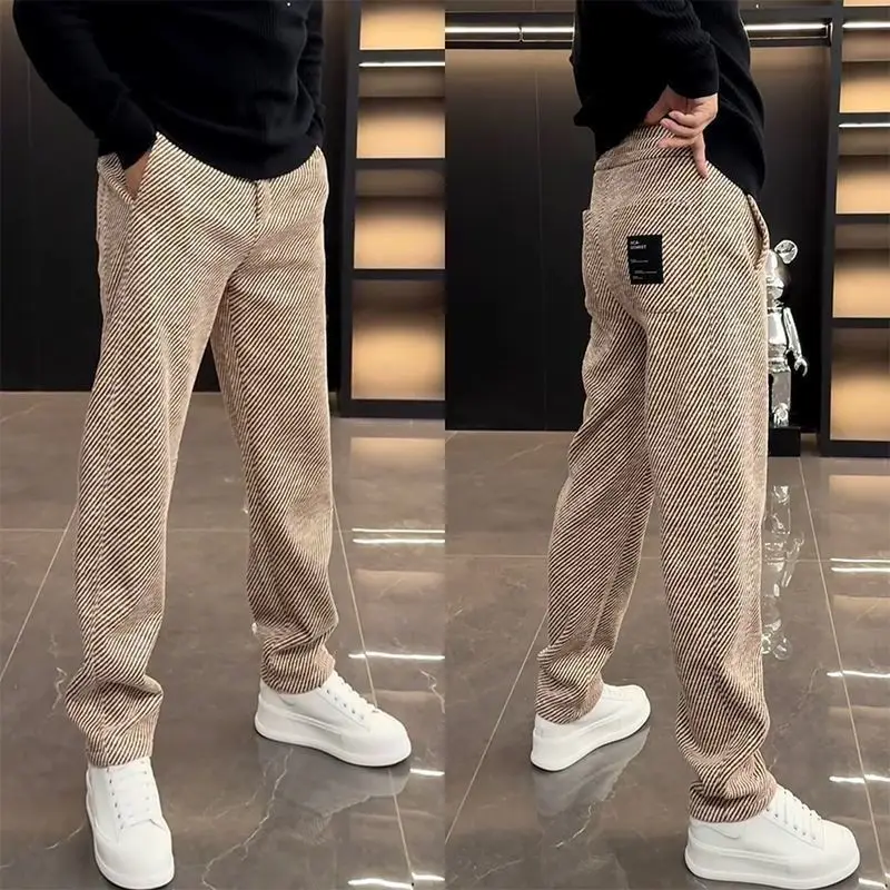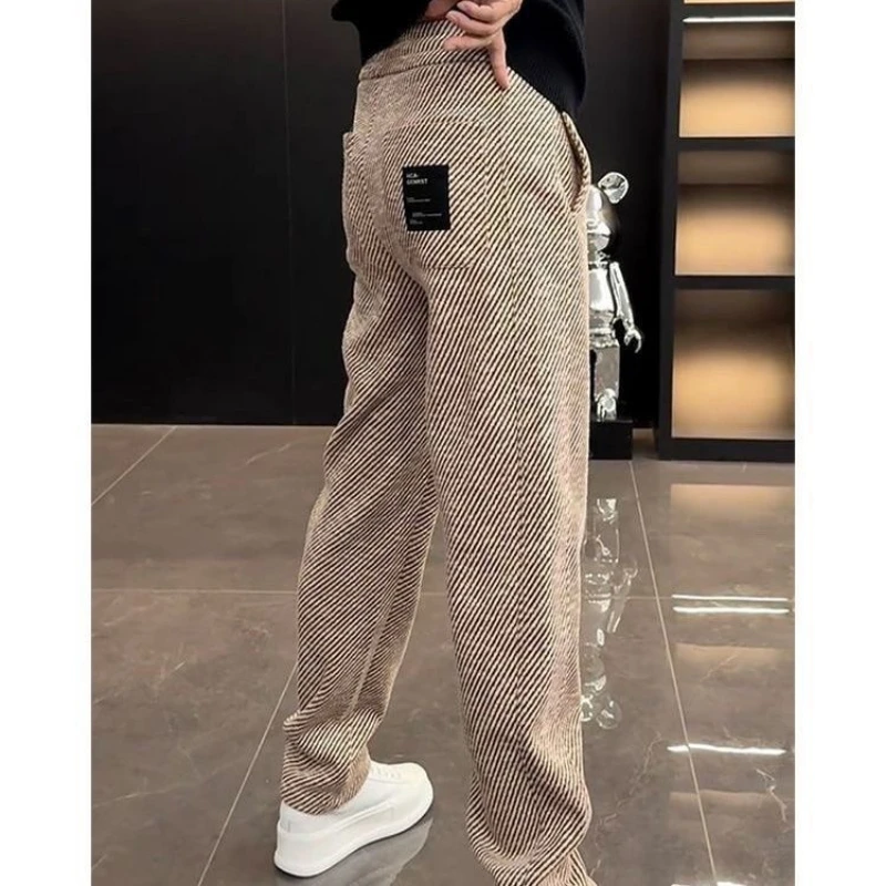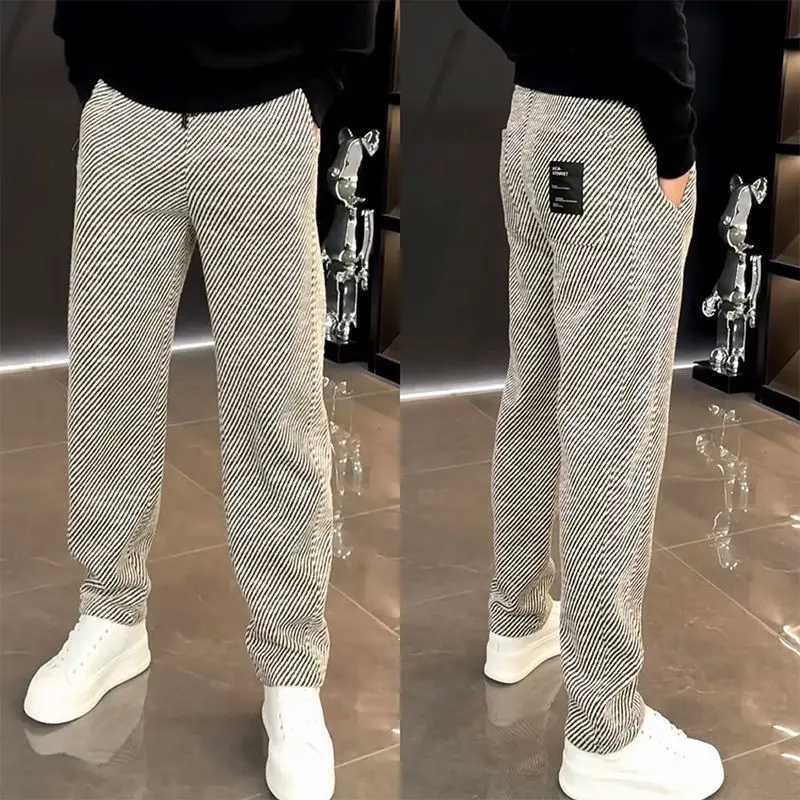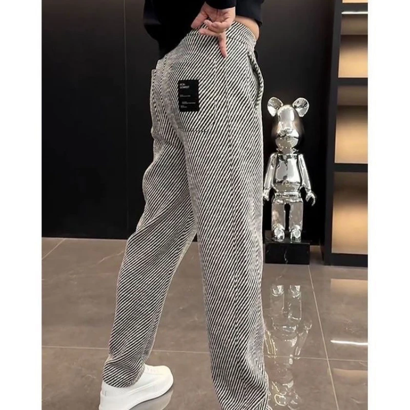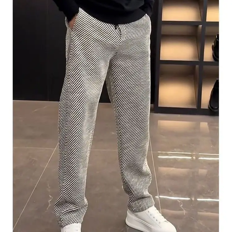 Primavera autunno nuova moda elastico in vita coulisse abbigliamento uomo tasche a righe coreano semplicità All-match Trend pantaloni Casual