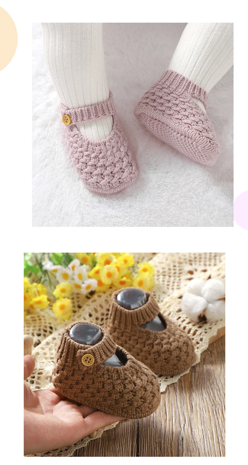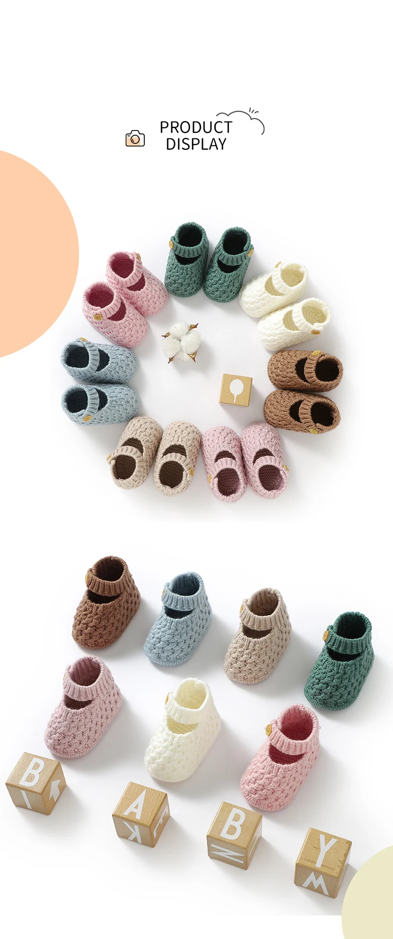 Primavera Baby Prewalker 0-18m Infantile Ragazza Tinta unita Pavimento interno Primo camminatore Scarpe Autunno Inverno Maglia Calzature per neonato Suola morbida