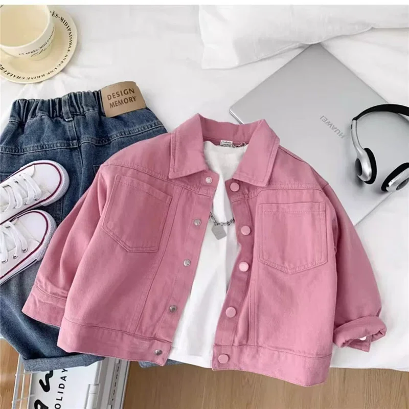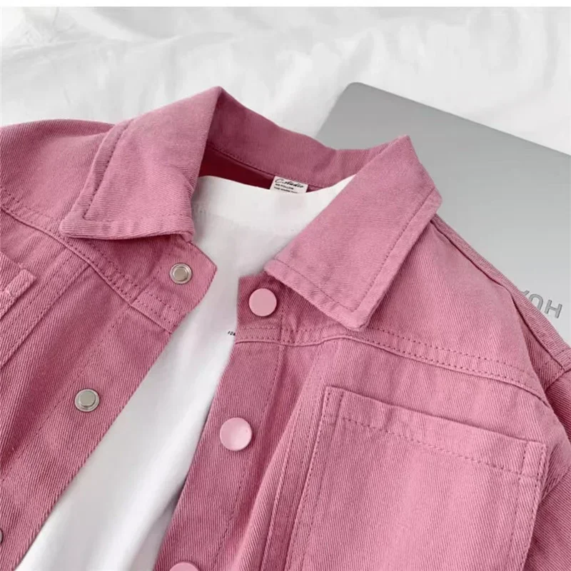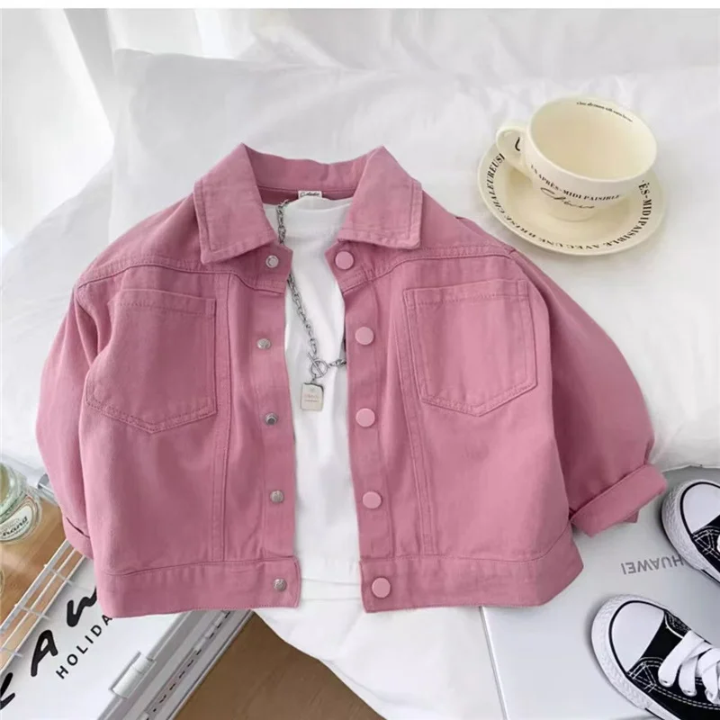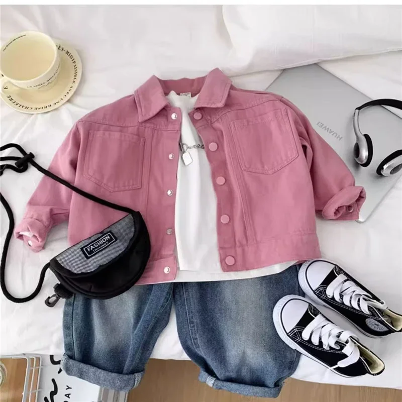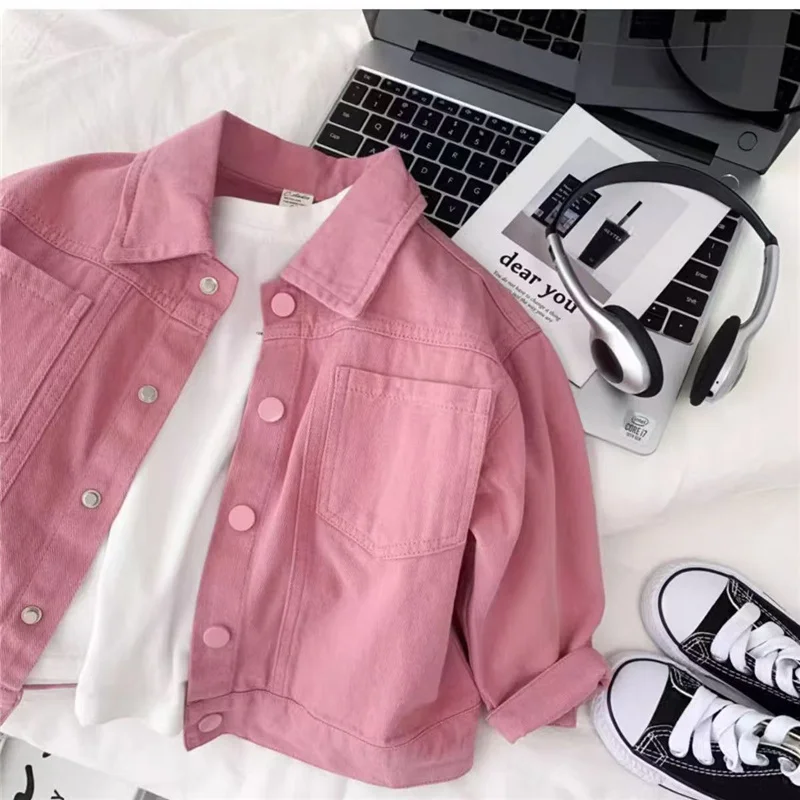 Primavera di Nuovo Modo Dolce Cardigan Cappotto Vestiti Per Bambini 2-8 Anni Delle Ragazze Dei Ragazzi Giubbotti di Jeans Autunno Rosa Laple Magliette E Camicette Tuta Sportiva