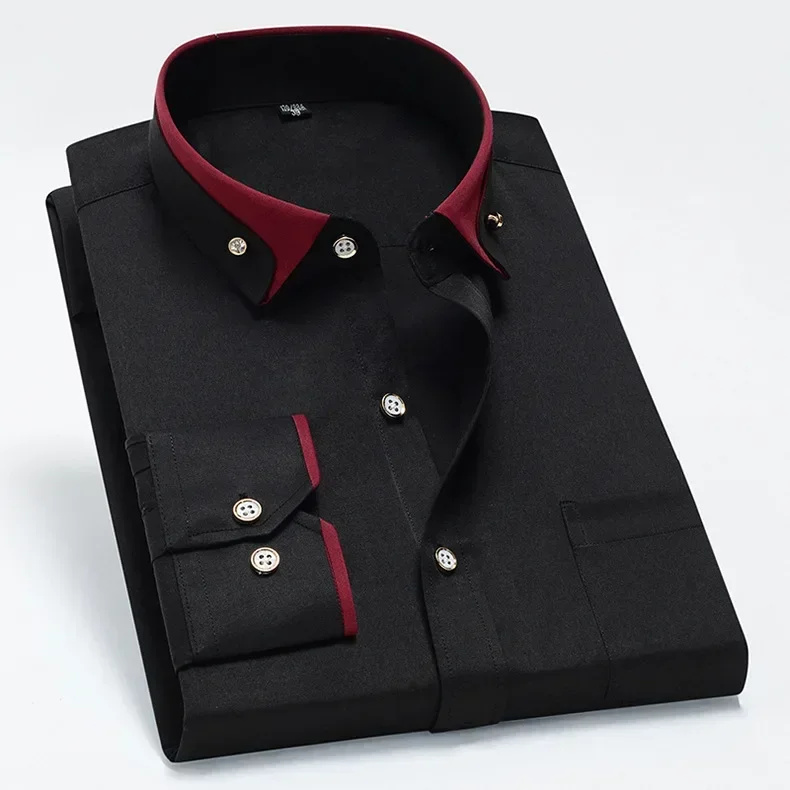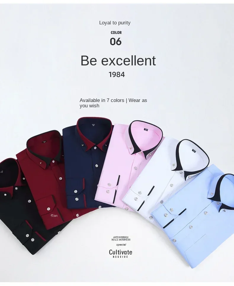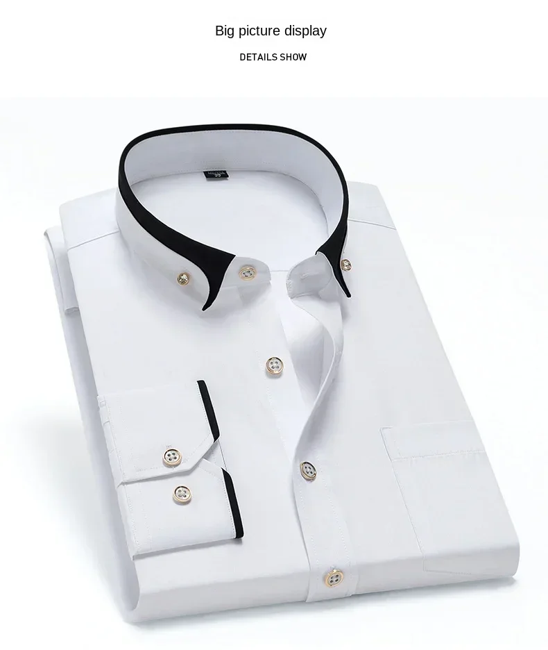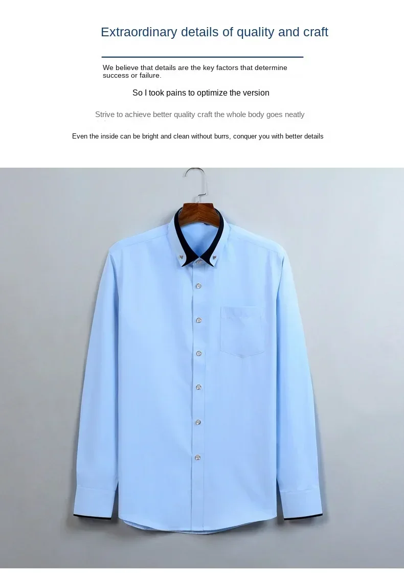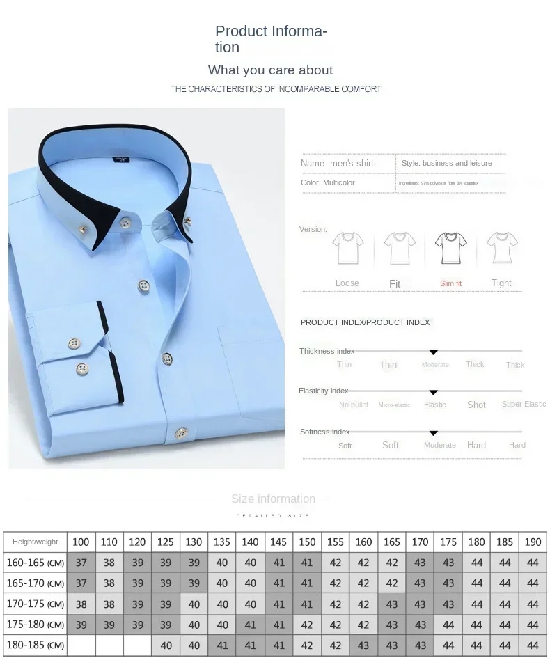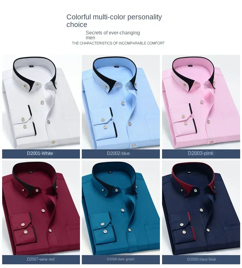 Primavera e autunno nuovi uomini colletto a contrasto camicia elastica a maniche lunghe Business Casual Comfort camicia senza ferro gioventù tinta unita 1Primavera e autunno nuovi uomini colletto a contrasto camicia elastica a maniche lunghe Business Casual Comfort camicia senza ferro gioventù tinta unita