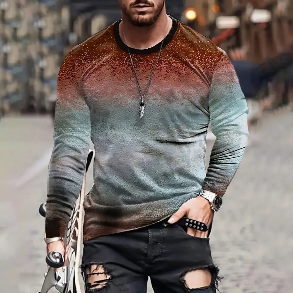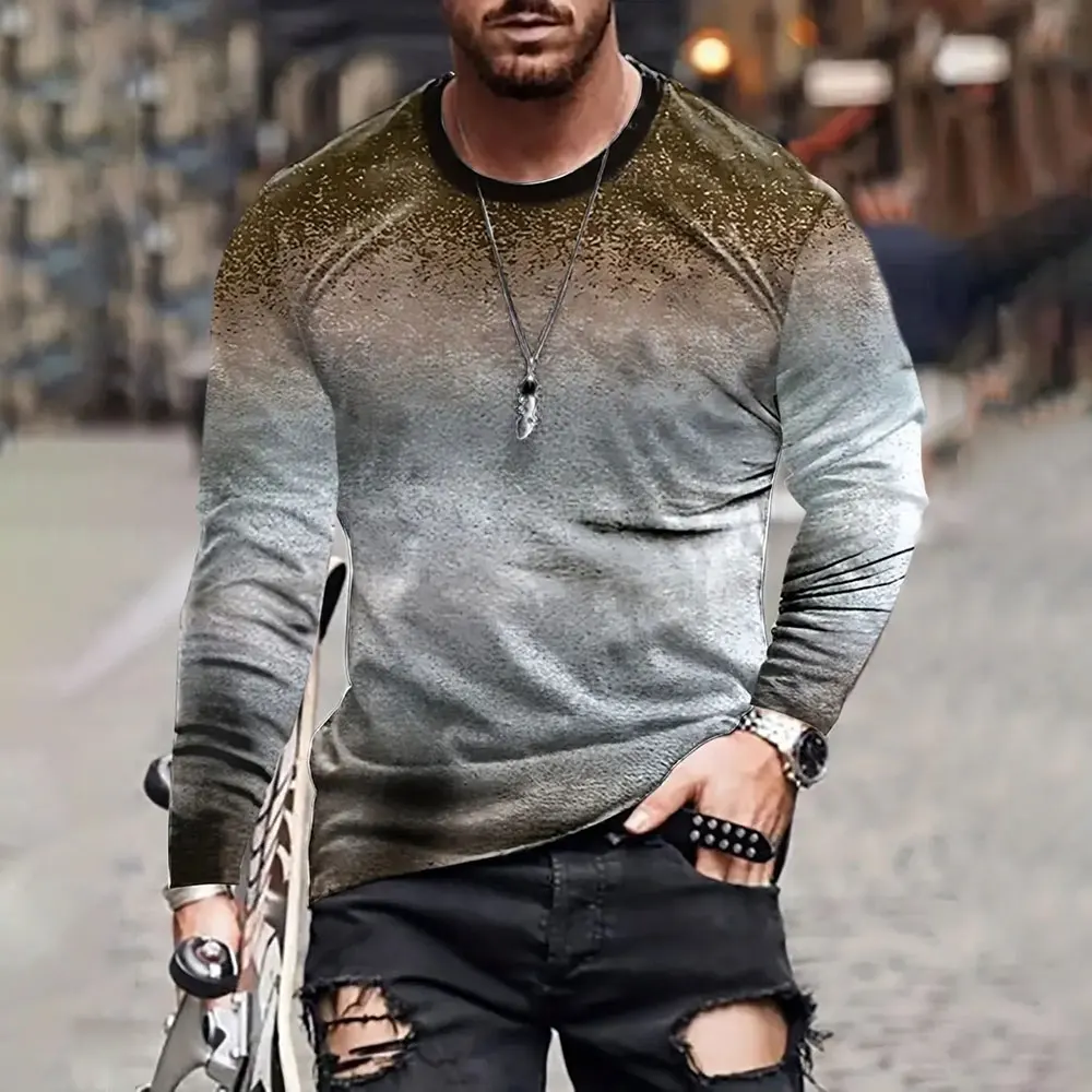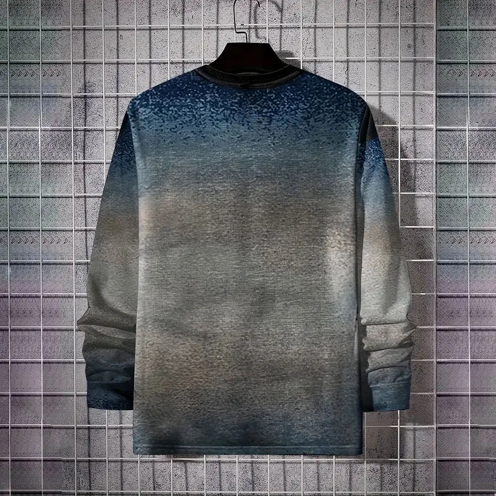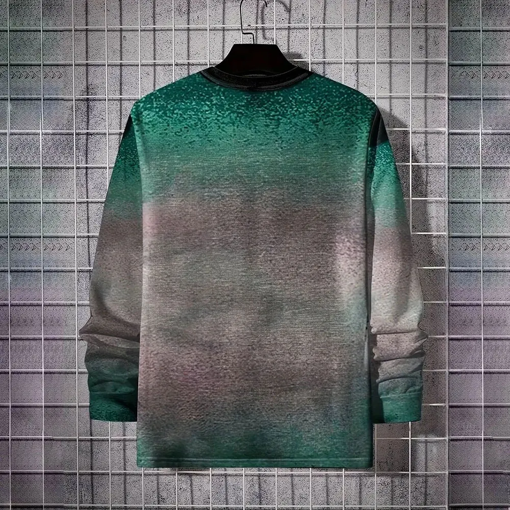 Primavera e autunno Nuovo girocollo a maniche lunghe T-shirt da uomo Street Daily Casual Allentato Top T-shirt sfumata di moda da uomo