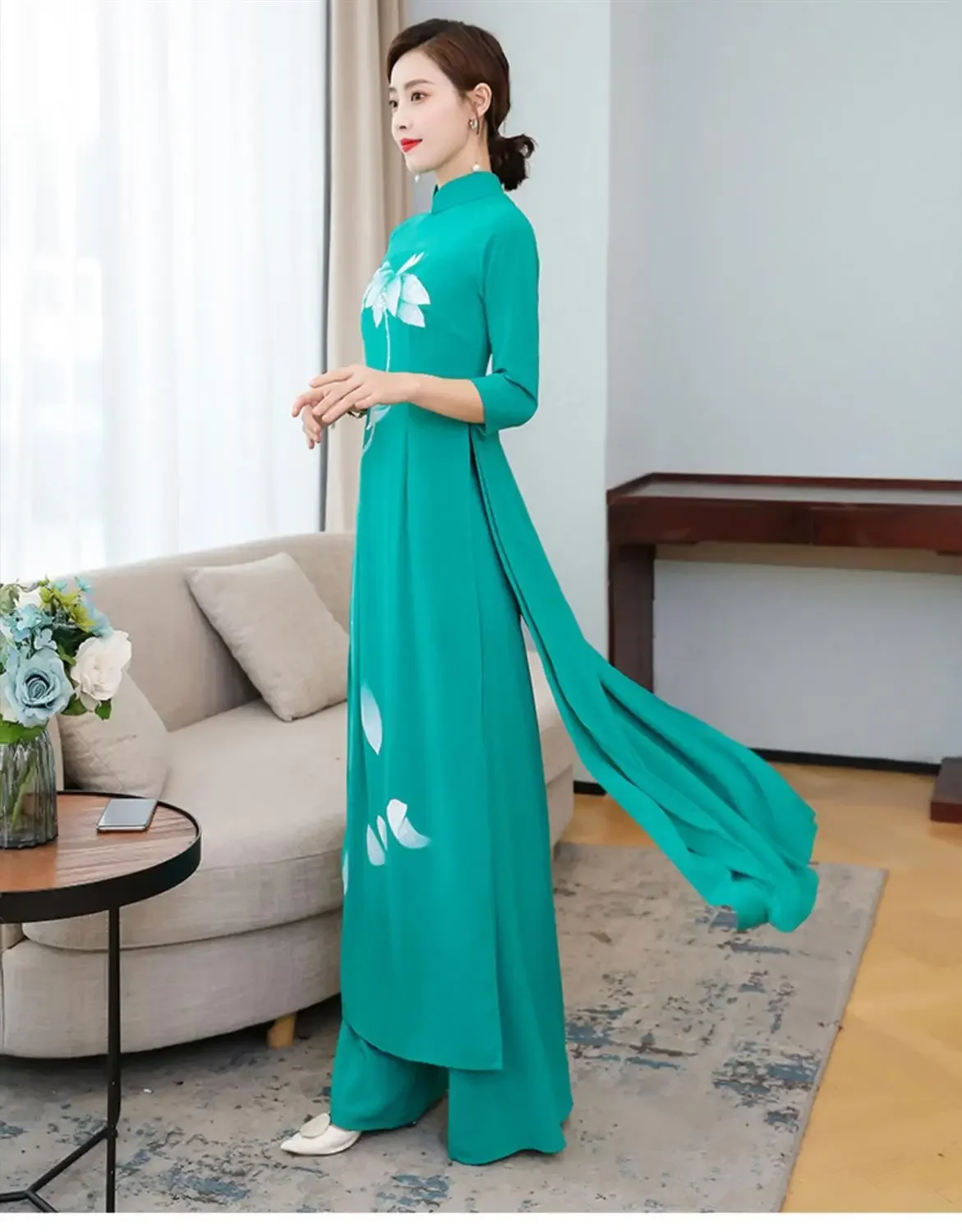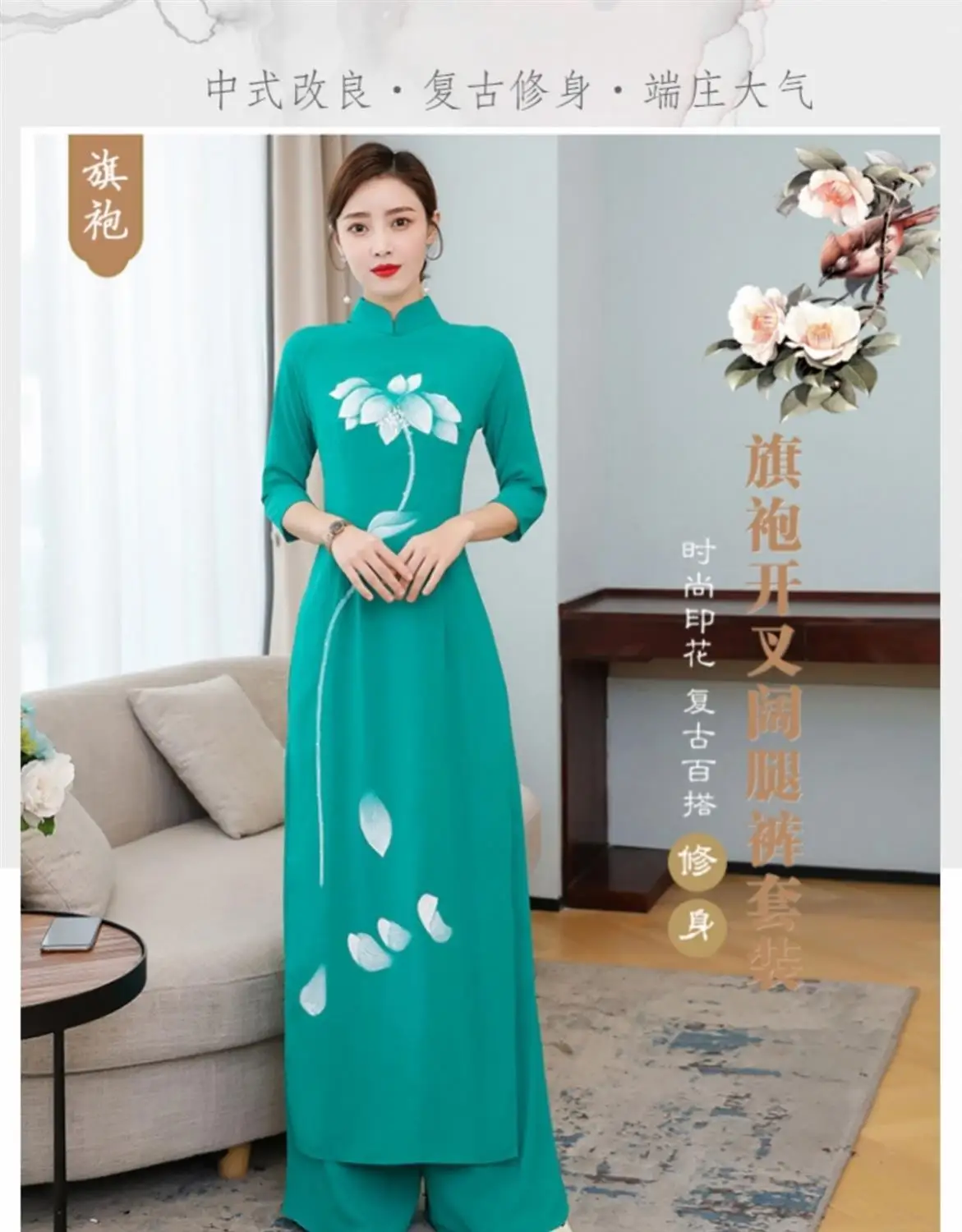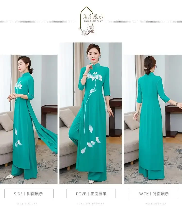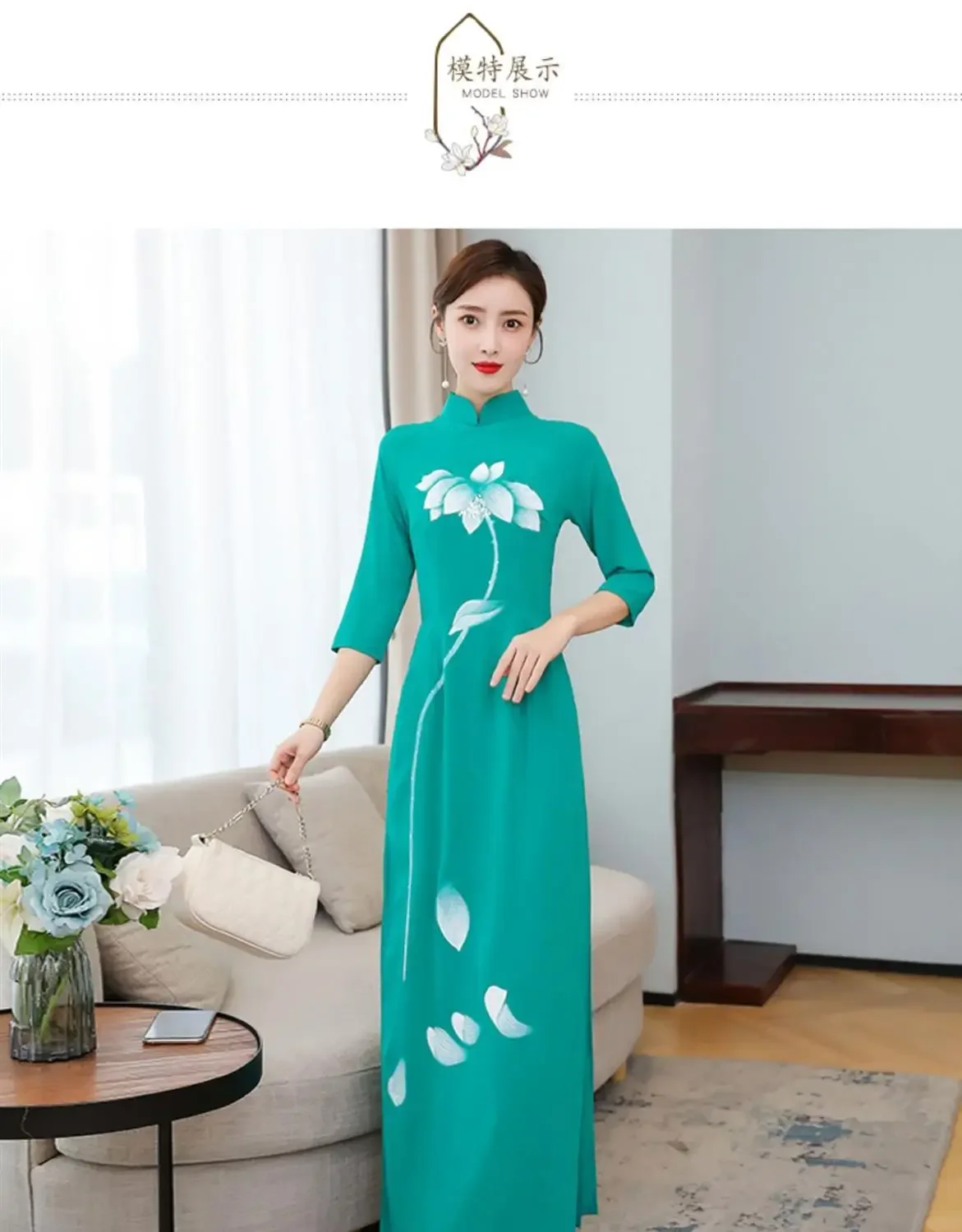 Primavera Estate Ao Dai Cheongsam Stile Folk Vietnam Chiffon Aodai Graceful Elegante Abito Tradizionale Cinese Migliora Qipao