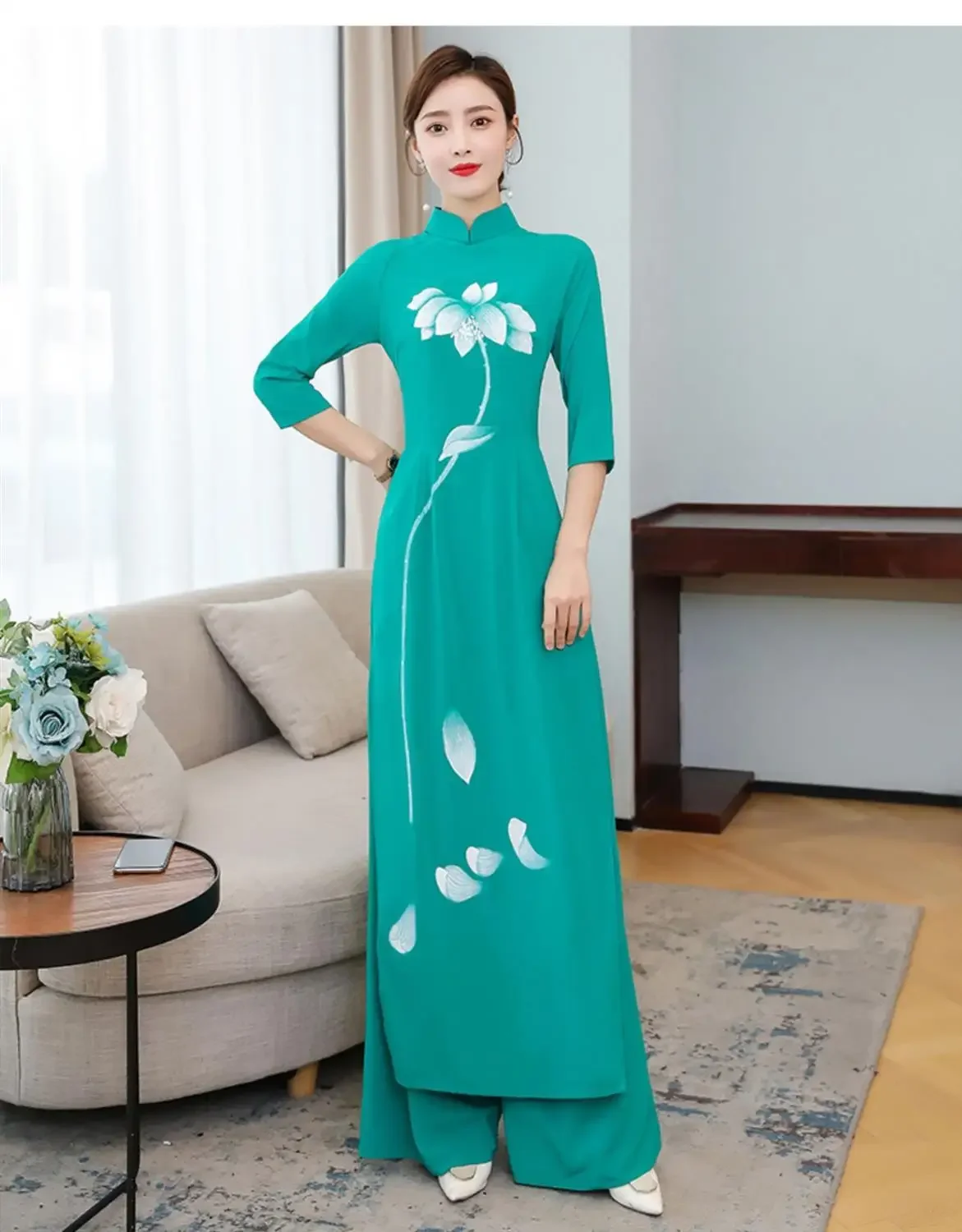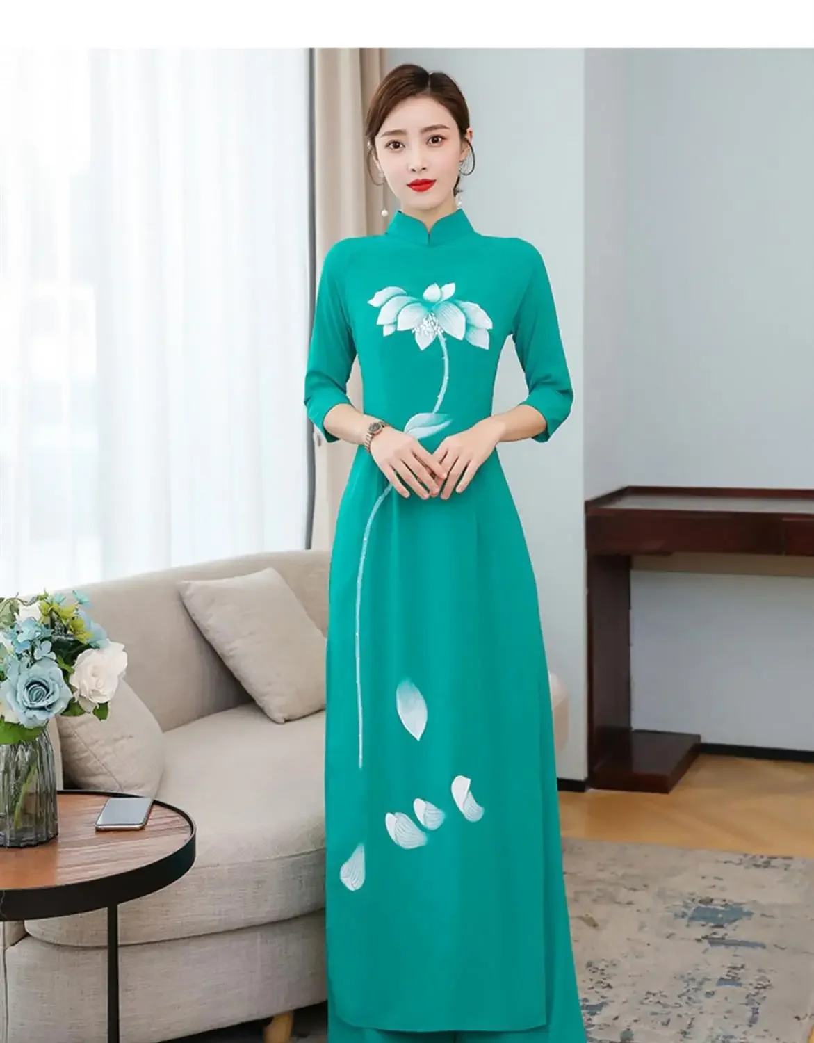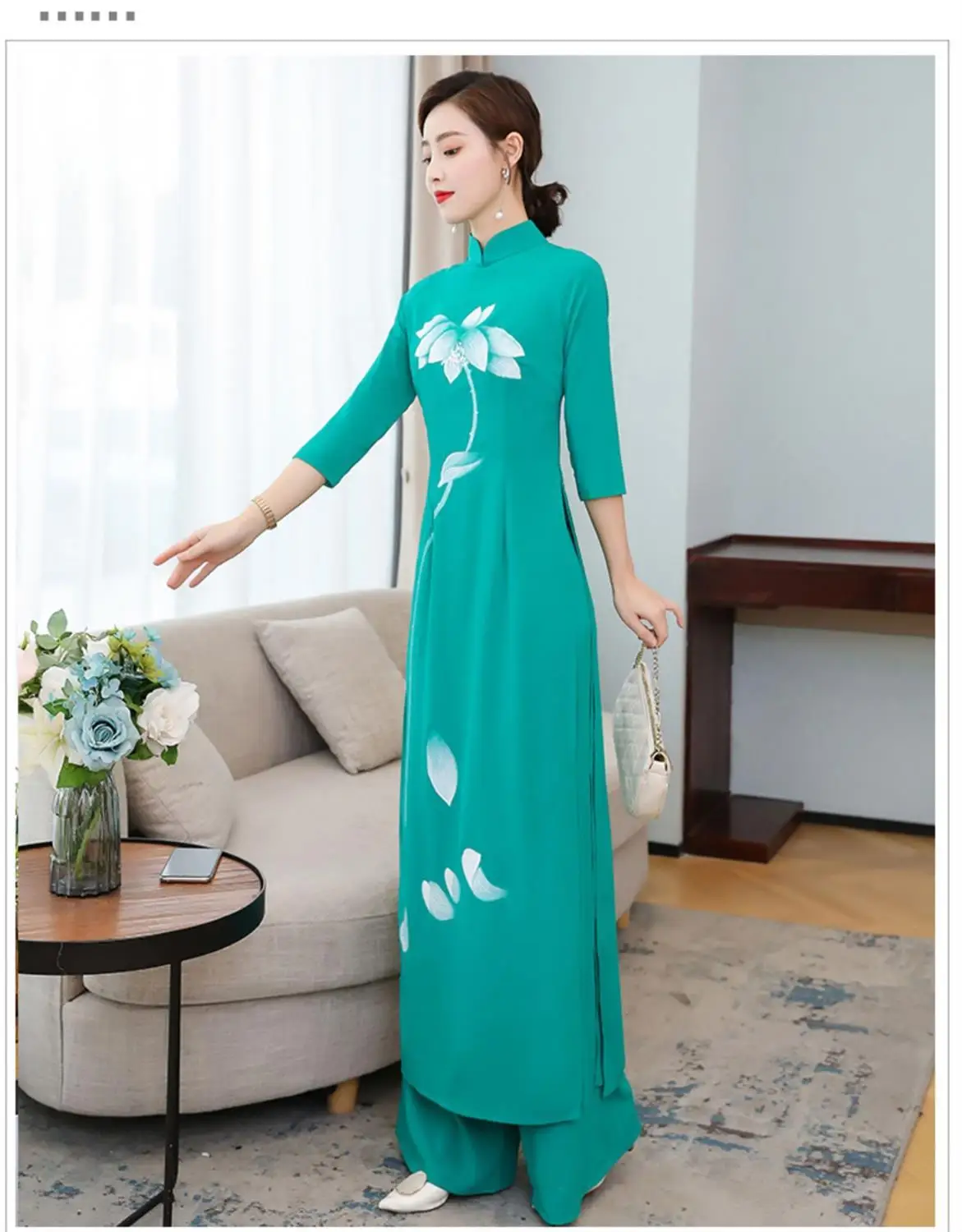 Primavera Estate Ao Dai Cheongsam Stile Folk Vietnam Chiffon Aodai Graceful Elegante Abito Tradizionale Cinese Migliora Qipao