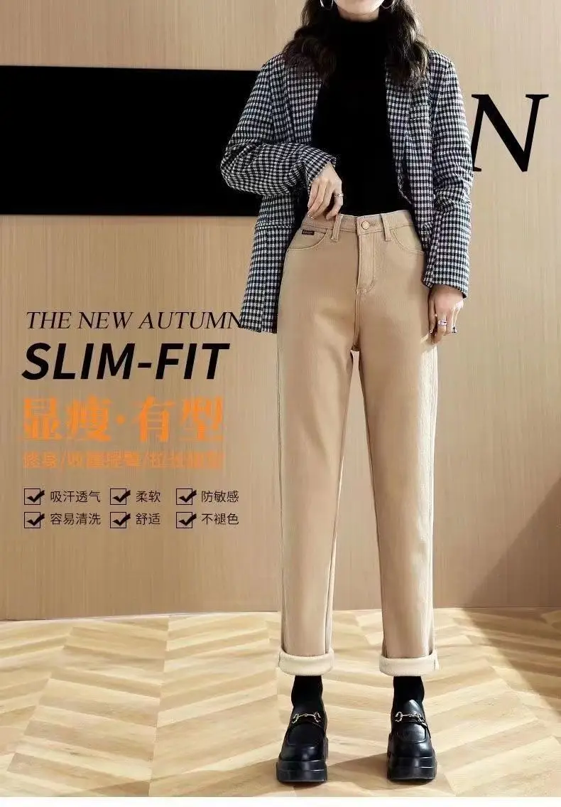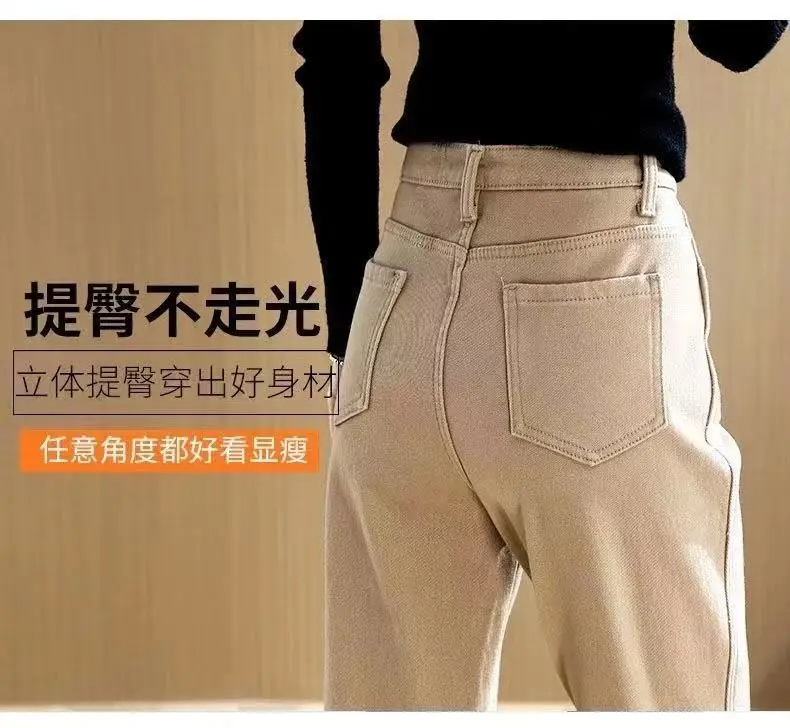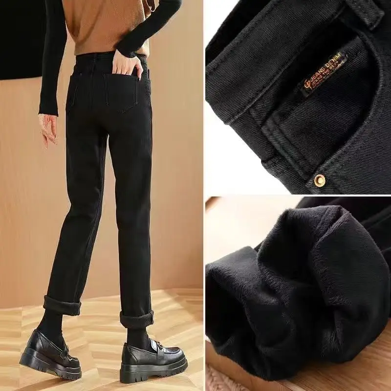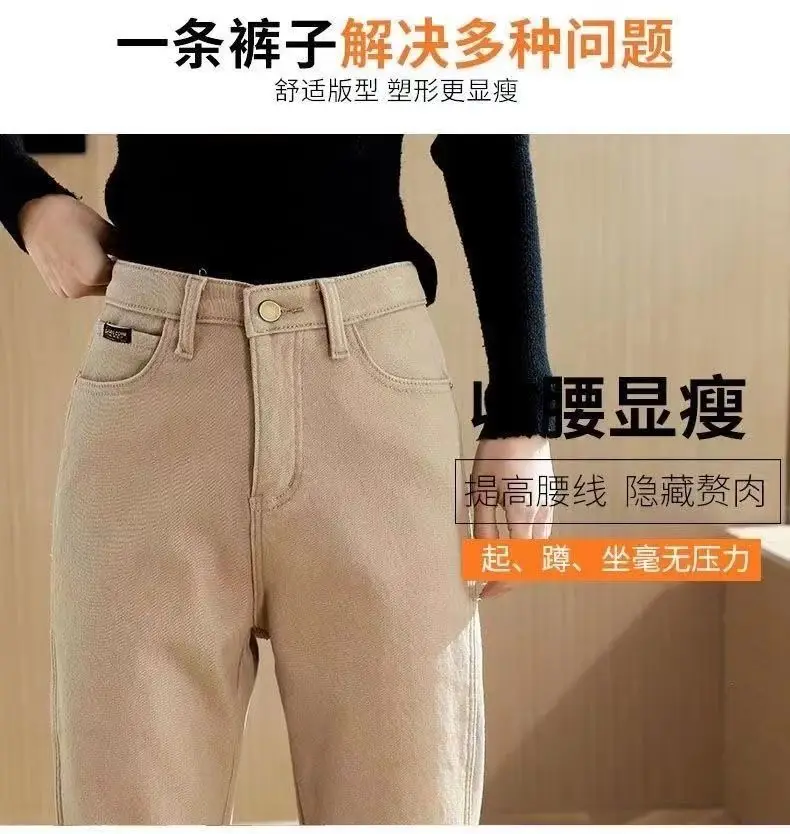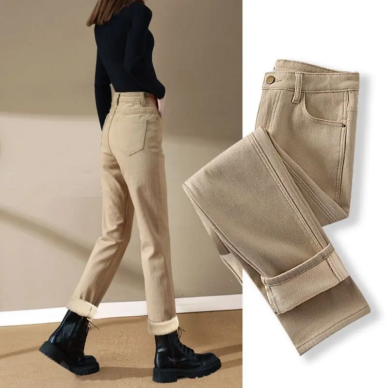 Primavera inverno New Plus velluto donna Jeans bottone vita alta pantaloni solidi tasche addensare moda Casual pantaloni dritti 2022 1Primavera inverno New Plus velluto donna Jeans bottone vita alta pantaloni solidi tasche addensare moda Casual pantaloni dritti 2022