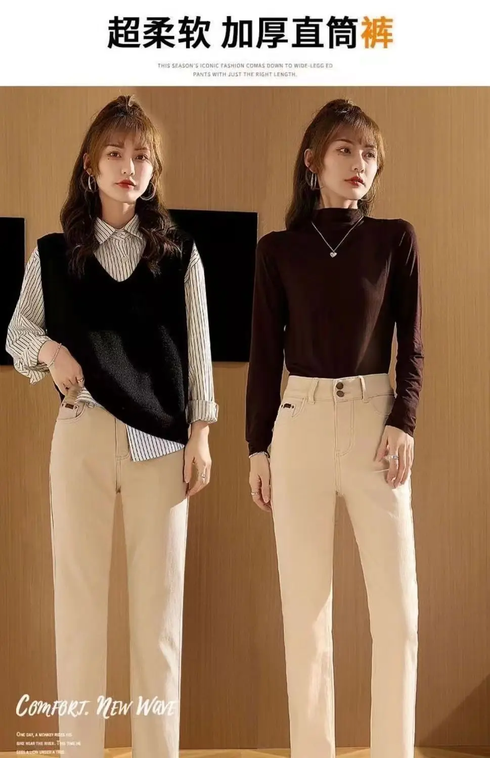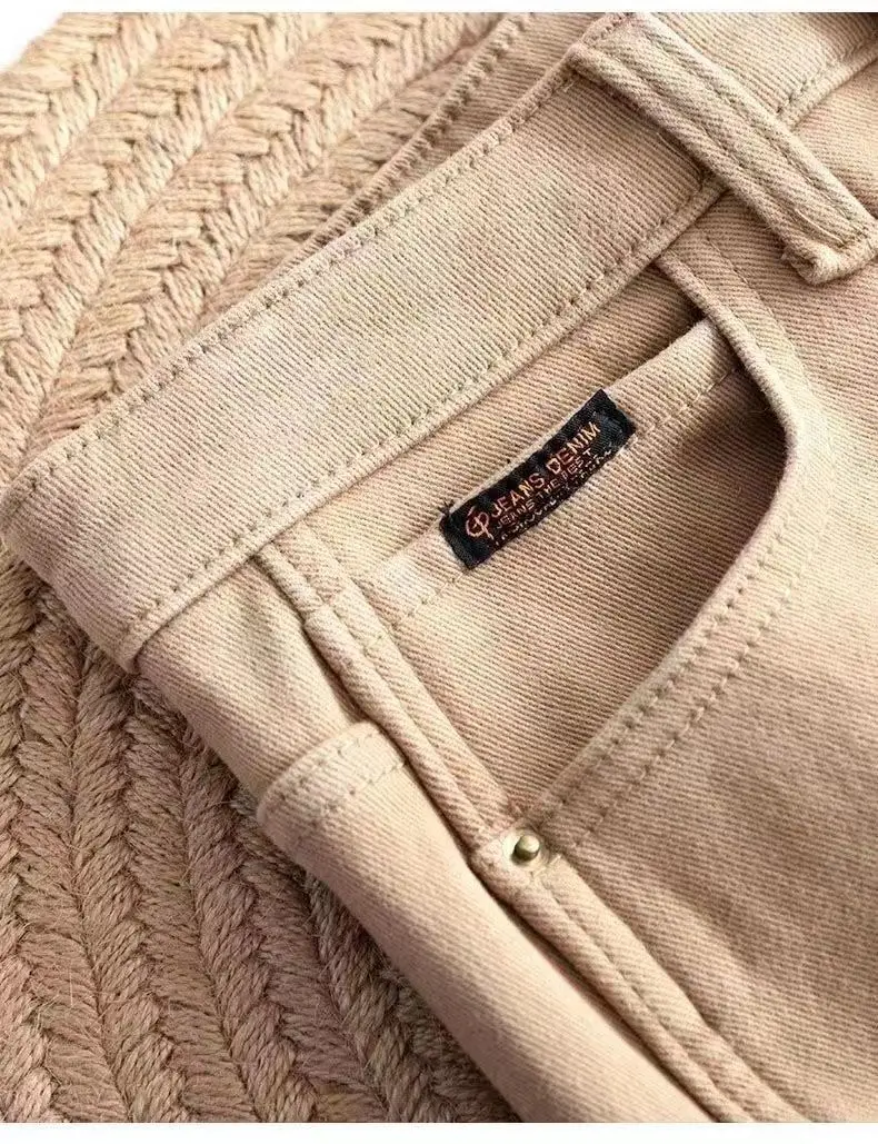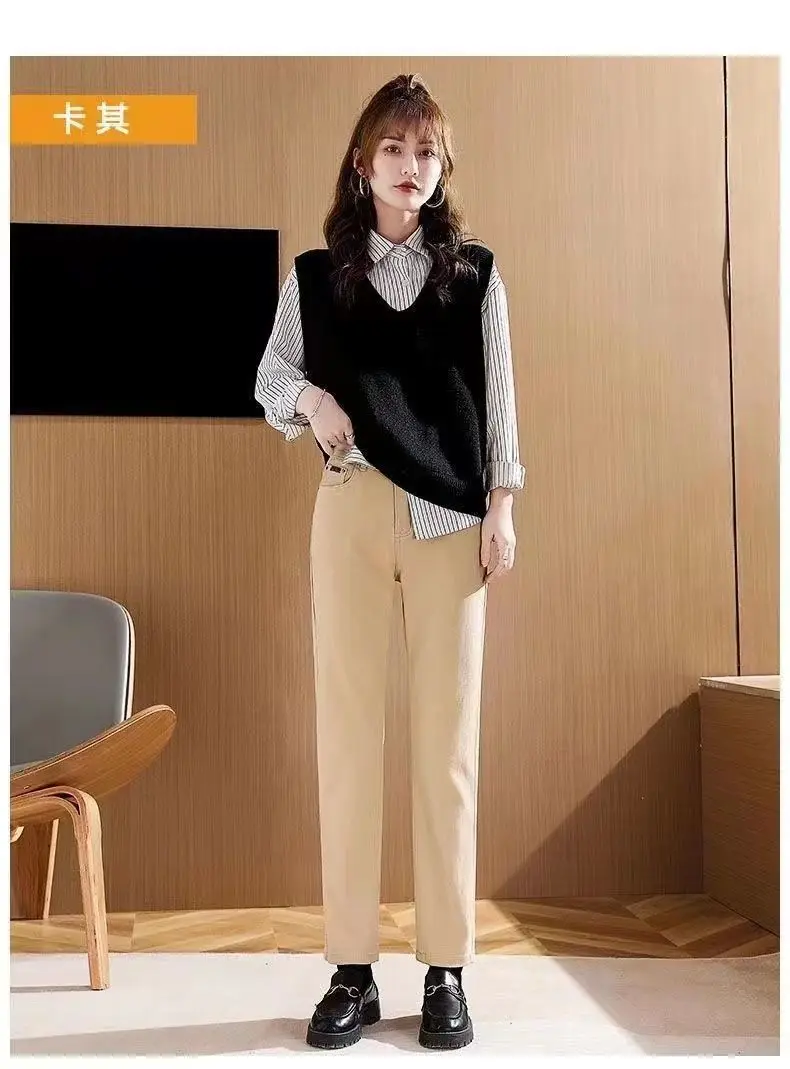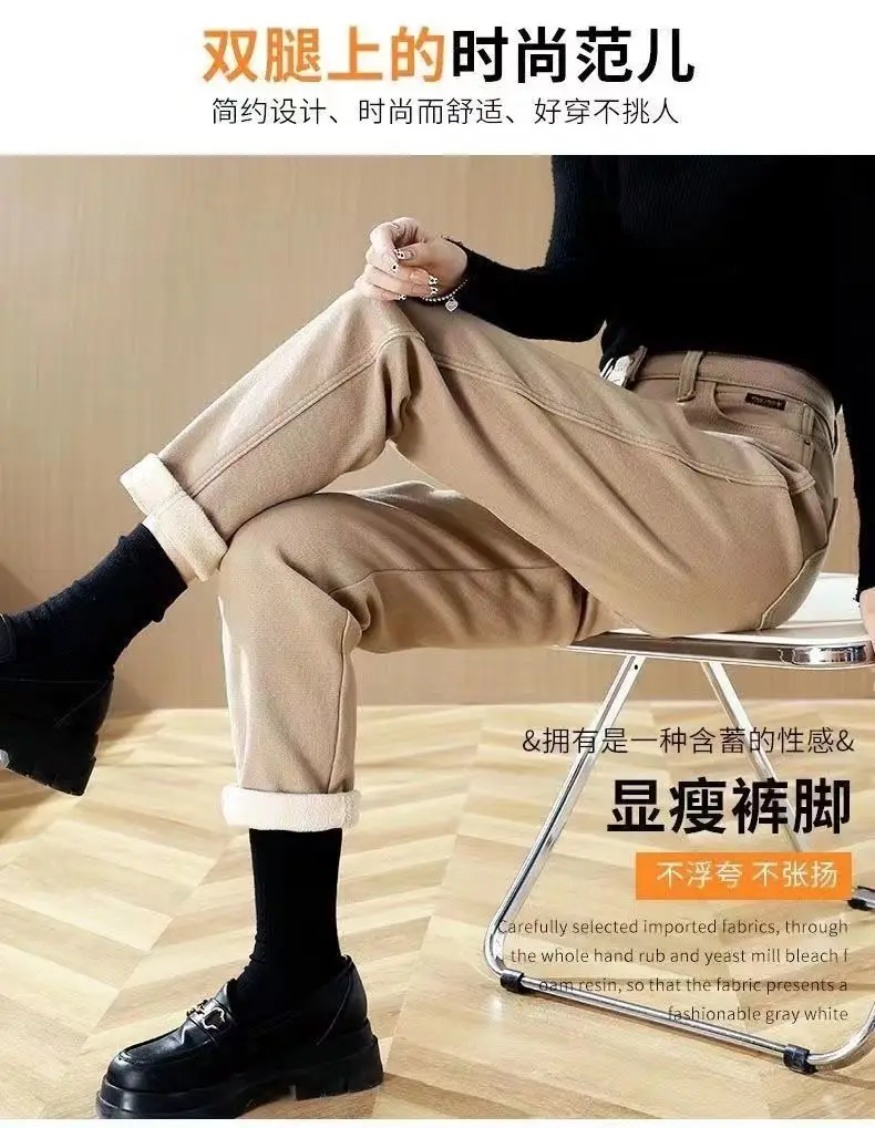 Primavera inverno New Plus velluto donna Jeans bottone vita alta pantaloni solidi tasche addensare moda Casual pantaloni dritti 2022 1Primavera inverno New Plus velluto donna Jeans bottone vita alta pantaloni solidi tasche addensare moda Casual pantaloni dritti 2022