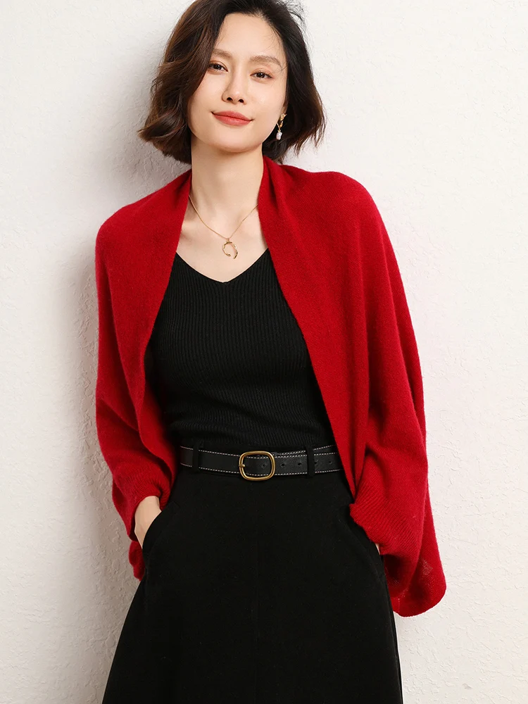 Primavera nuovo 100% lana Merino Cardigan per le donne morbido solido Cashmere maglieria scialle sciarpa femminile coreano popolare maglione grazia top