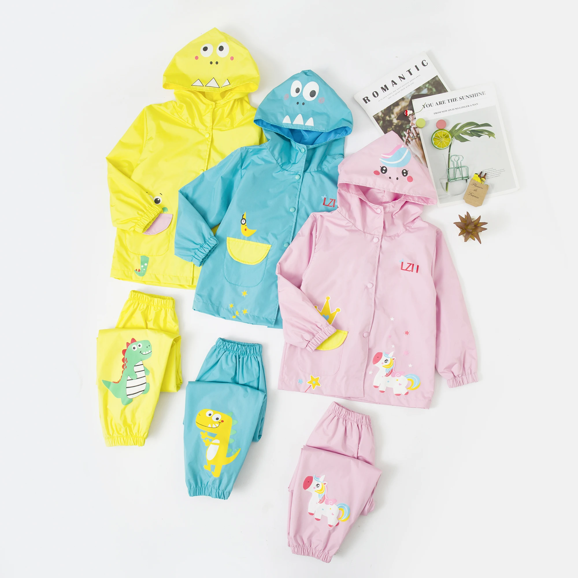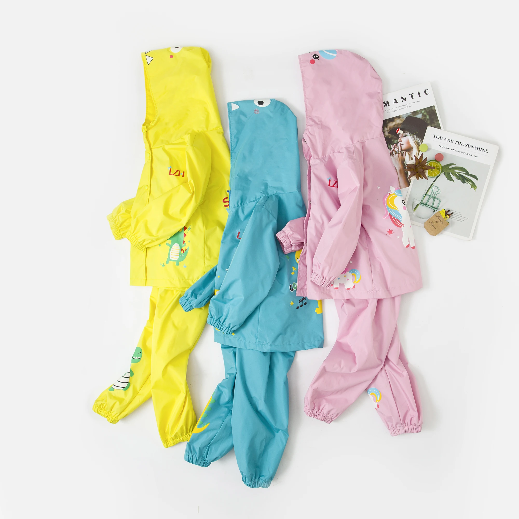 Primavera Unicorno Vestiti Impermeabili Manica Lunga Ragazzo Ragazze Abiti Felpa Con Cappuccio Cappotto + Pantaloni Set Impermeabile Abbigliamento Per Bambini 2 4 6 Anni