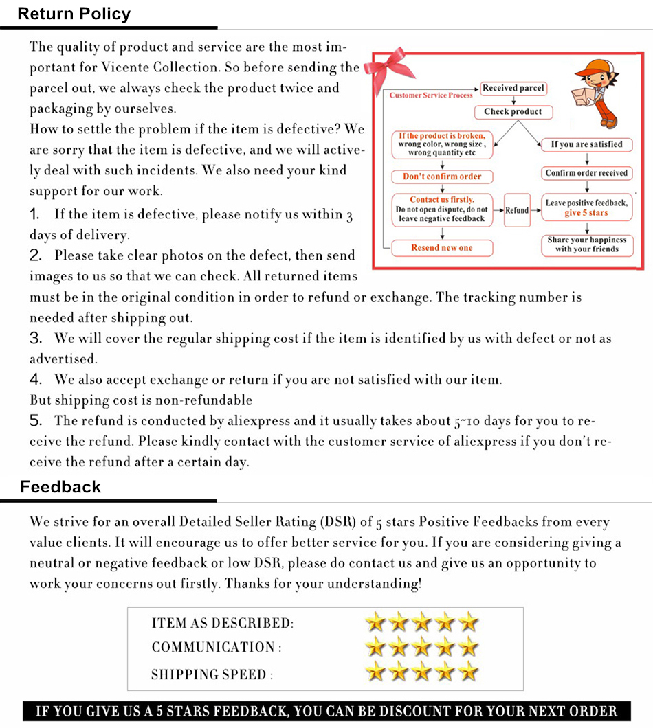 2. Se sei soddisfatto dei nostri articoli, per favore lascia un feedback attivo, grazie!