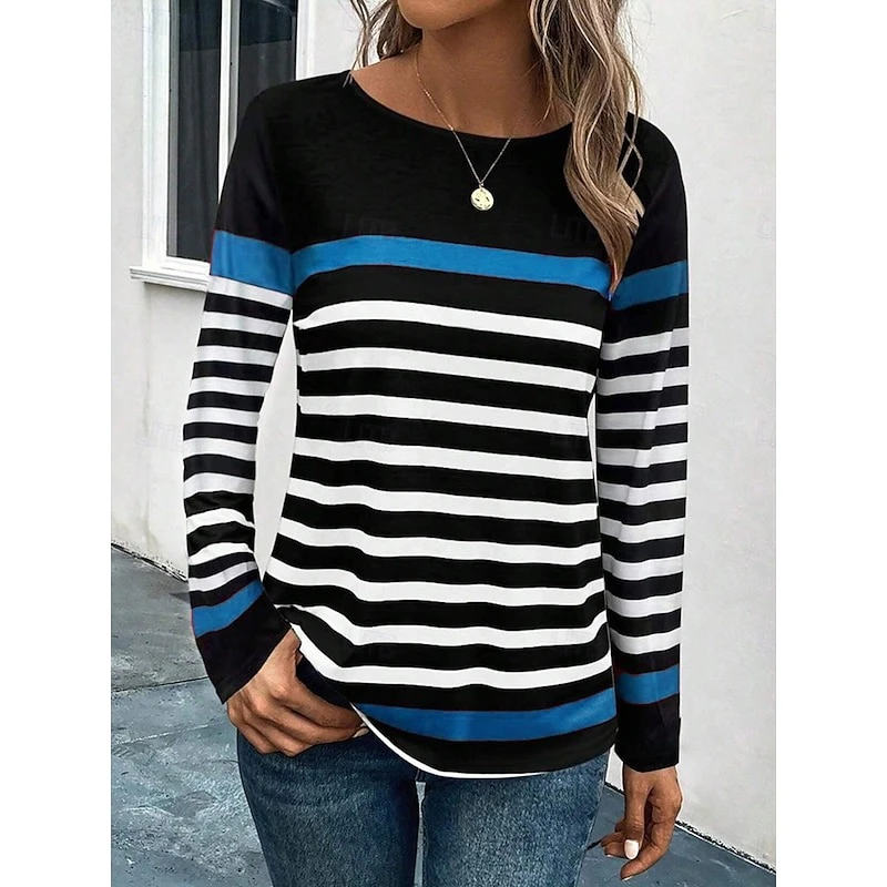 Print Stripes Sweatshirt Women's Clothing Simple Design Round Neck Casual Sweatshirts Color Block Graphic Spring Sport Hoodie 1Print Stripes Sweatshirt Women’s Clothing Simple Design Round Neck Casual Sweatshirts Color Block Graphic Spring Sport Hoodie