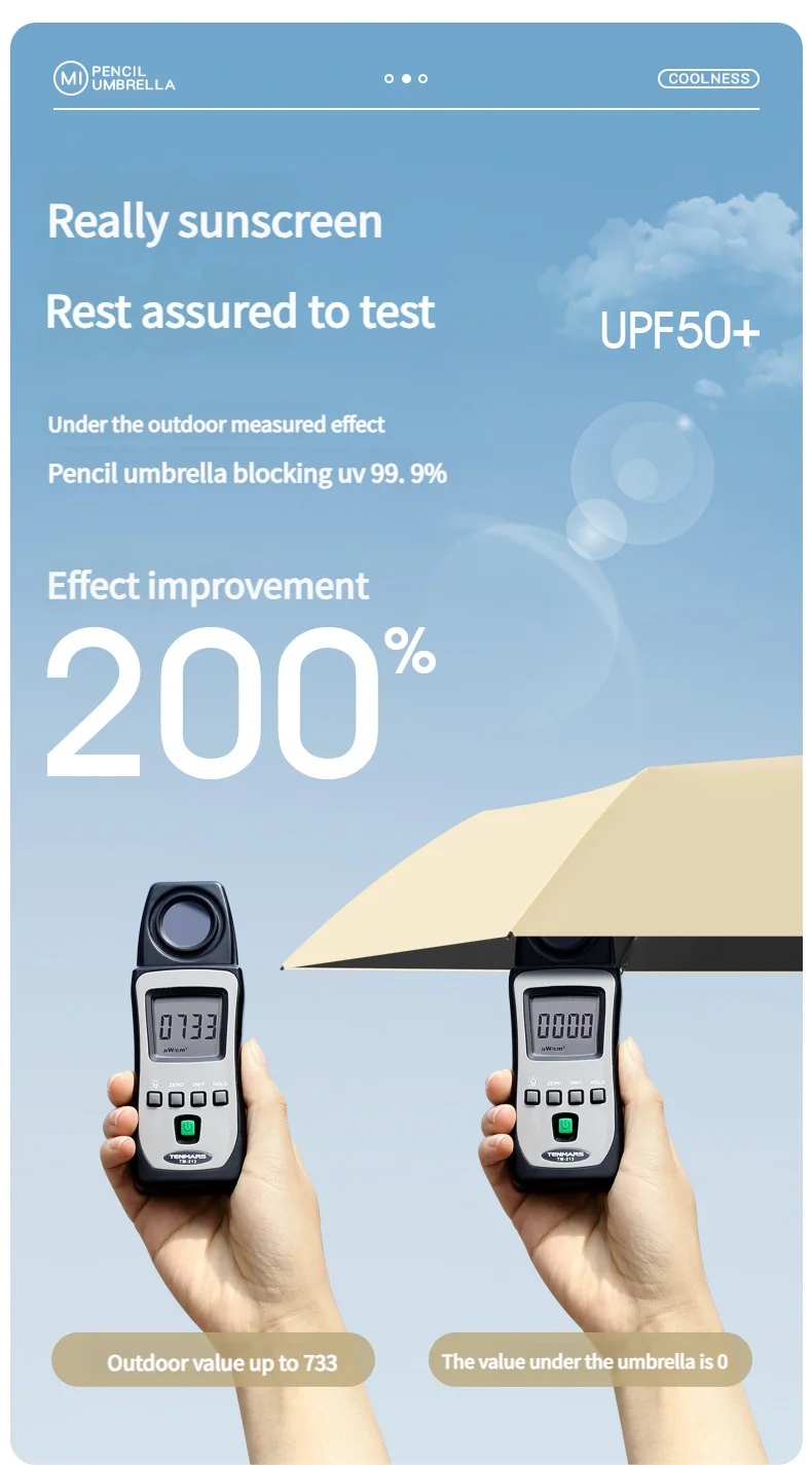 Dotato di protezione UV, questo ombrello che saldo dai raggi nocivi del sole durante le attività all’aperto.