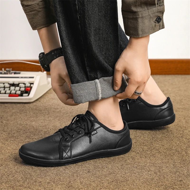 PUAMSS Scarpe minimaliste a piedi nudi da uomo | Goccia zero | Scarpe da passeggio in pelle per sneaker alla moda unisex di larghezza larga