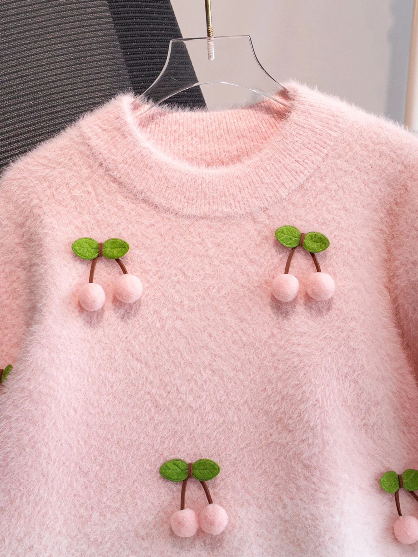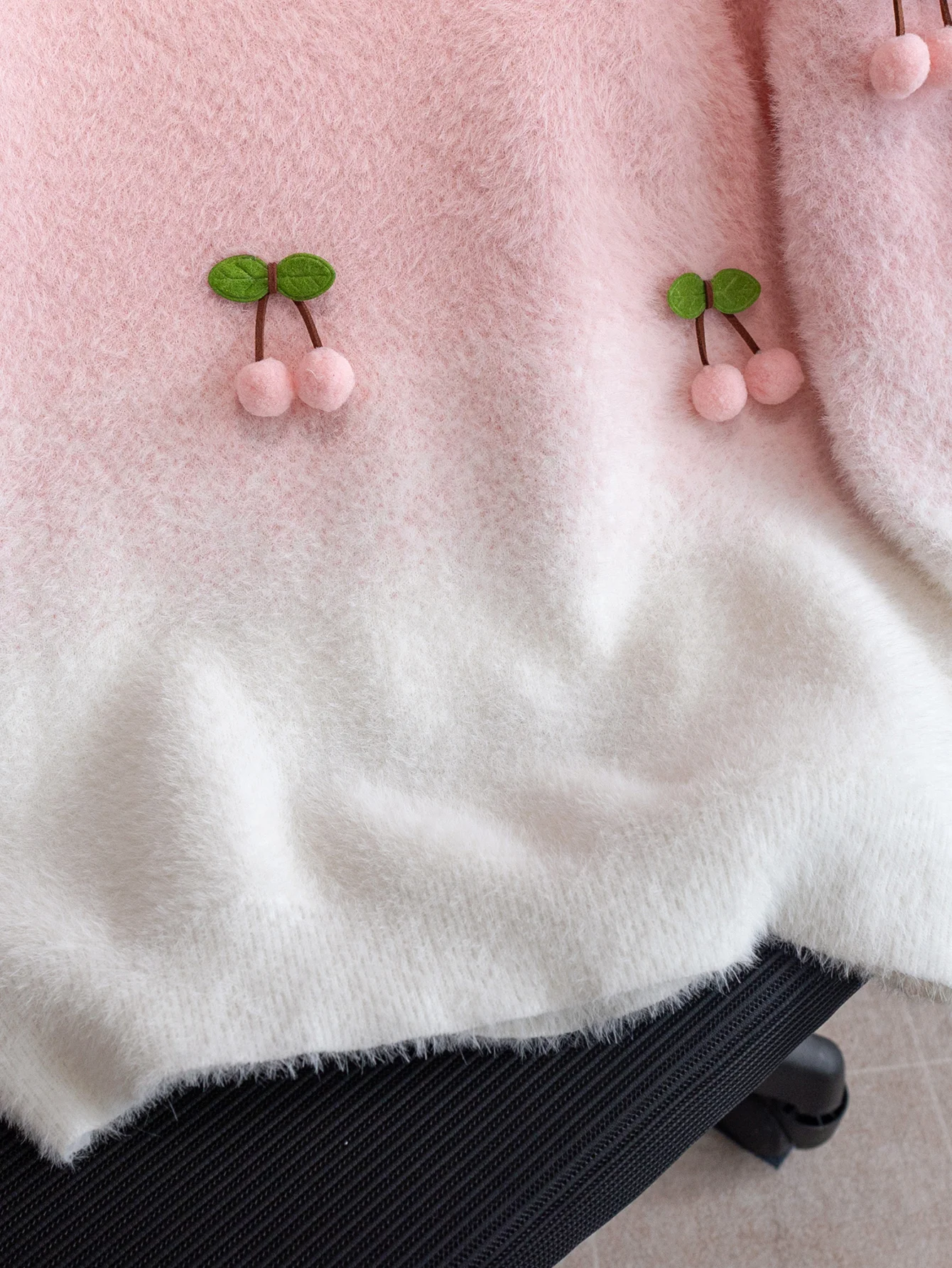 Pullover lavorato a maglia maglione ciliegia sfumato stile carino da ragazza adatto per le vacanze quotidiane in primavera, autunno e inverno 1Pullover lavorato a maglia maglione ciliegia sfumato stile carino da ragazza adatto per le vacanze quotidiane in primavera, autunno e inverno