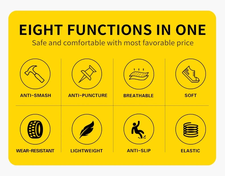Scarpa antinfortunistica super leggera: è come il peso di un paio di scarpe da corsa.Possono aiutano a lavorare felici tutto il giorno senza eliminare i piedi.Con solette super morbide e suola alta elastica, i tuoi piedi sono sicuri e confortevoli.Il superiore traspirante è molto morbido Comodo, mantiene i piedi comodi e traspiranti.