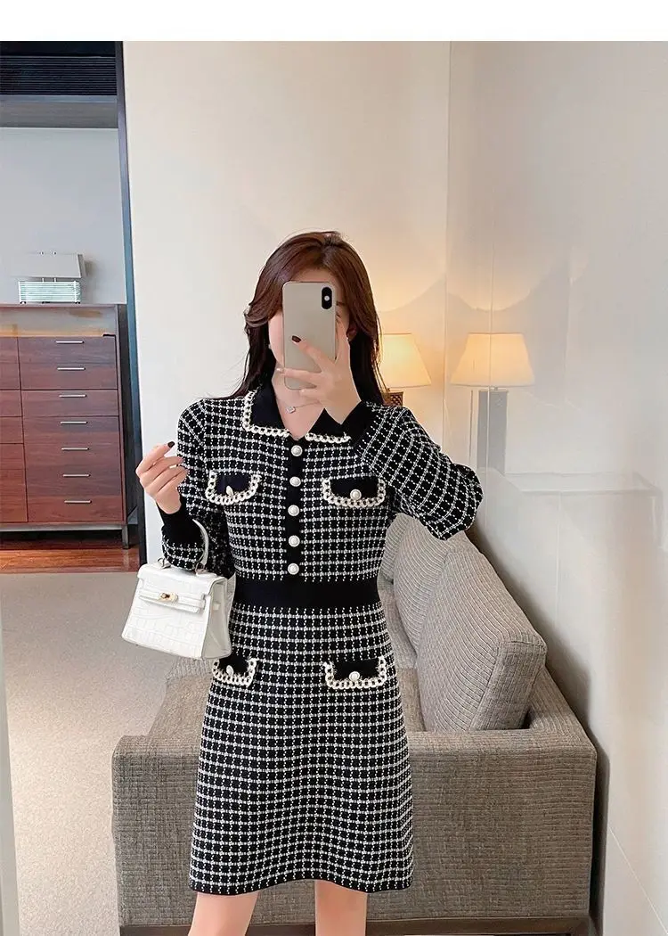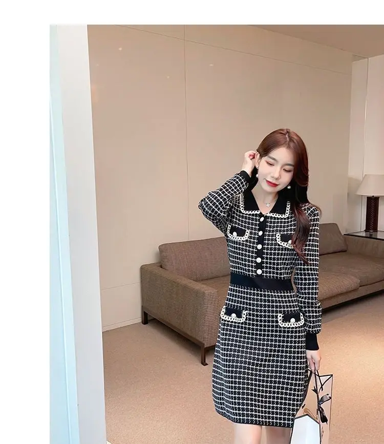Qiandongge Abito lavorato a maglia da donna 2025 Autunno e inverno Temperamento di Capodanno Gonna maglione stile straniero francese 1Qiandongge Abito lavorato a maglia da donna 2025 Autunno e inverno Temperamento di Capodanno Gonna maglione stile straniero francese