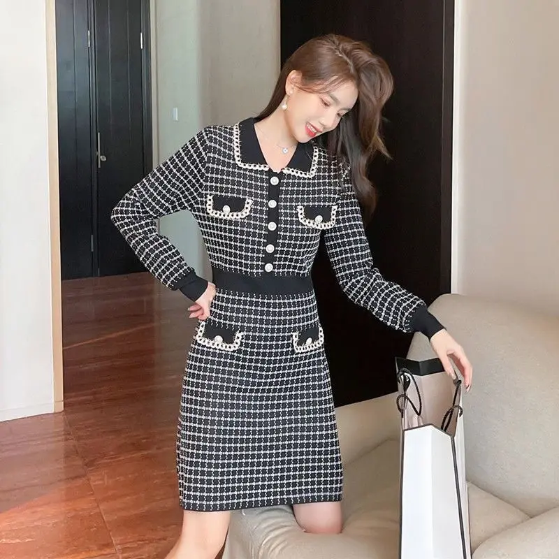 Qiandongge Abito lavorato a maglia da donna 2025 Autunno e inverno Temperamento di Capodanno Gonna maglione stile straniero francese 1Qiandongge Abito lavorato a maglia da donna 2025 Autunno e inverno Temperamento di Capodanno Gonna maglione stile straniero francese