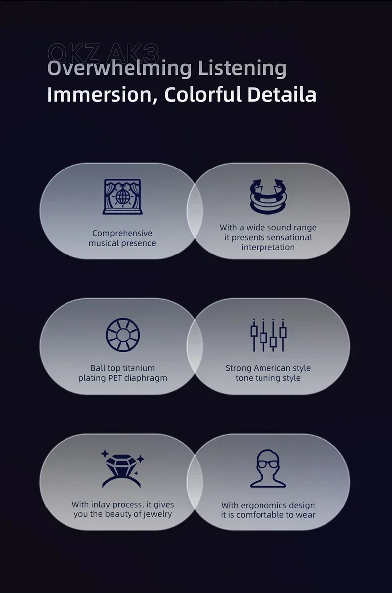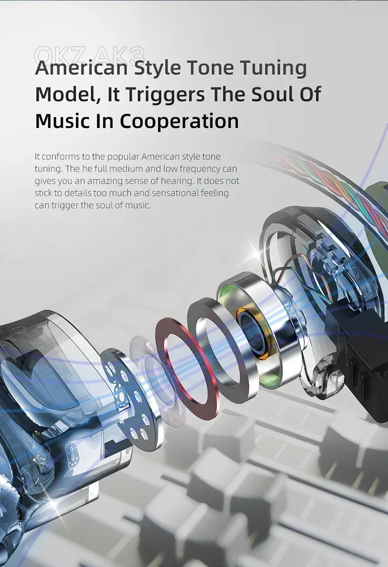 1x Auricolari cablati originali QKZ-AK6-X/AK6, NOTA: L’AK6 NON SUPPORTO Regolazione del volume
