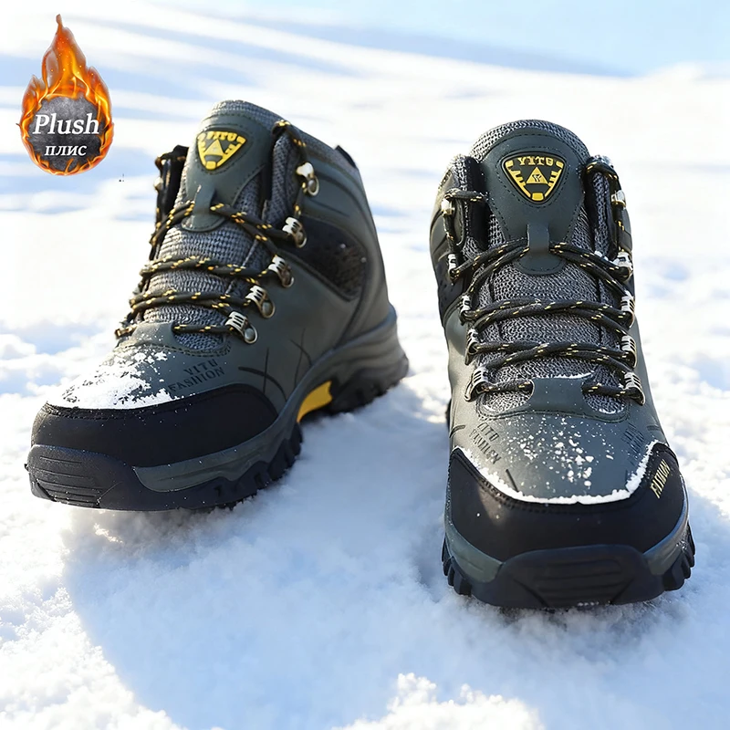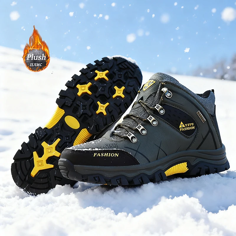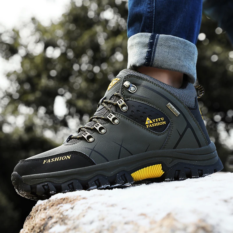 QZHSMY Scarpe da trekking da uomo Scarpe in pelle impermeabili Scarpe da arrampicata e da pesca Nuove scarpe da esterno popolari Stivali invernali alti da uomo