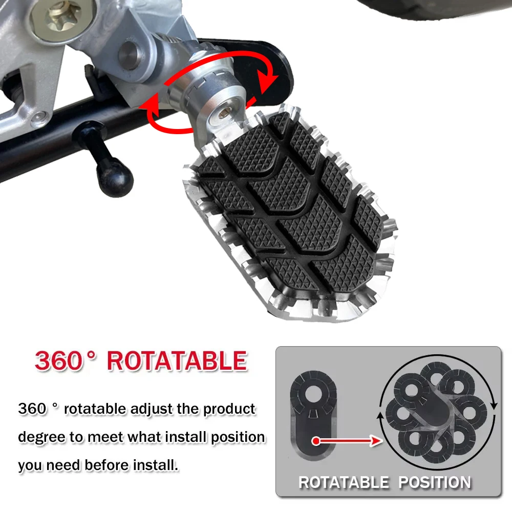 1.Condizione: 100% nuovo di zecca 2.Colori: argento, nero 3. Materiale: poggiapiedi in alluminio + copertura in gomma 4. Pacchetto: Opzione A: un set di poggiapiedi senza copertura Opzione B: un set di poggiapiedi con copertura Opzione C: solo 1 paio di coperture in gomma, non include alcun poggiapiedi!!! Nota: vengono impostate più opzioni in base alle diverse esigenze dei clienti, si prega di controllare attentamente prima di ordinare!!!
