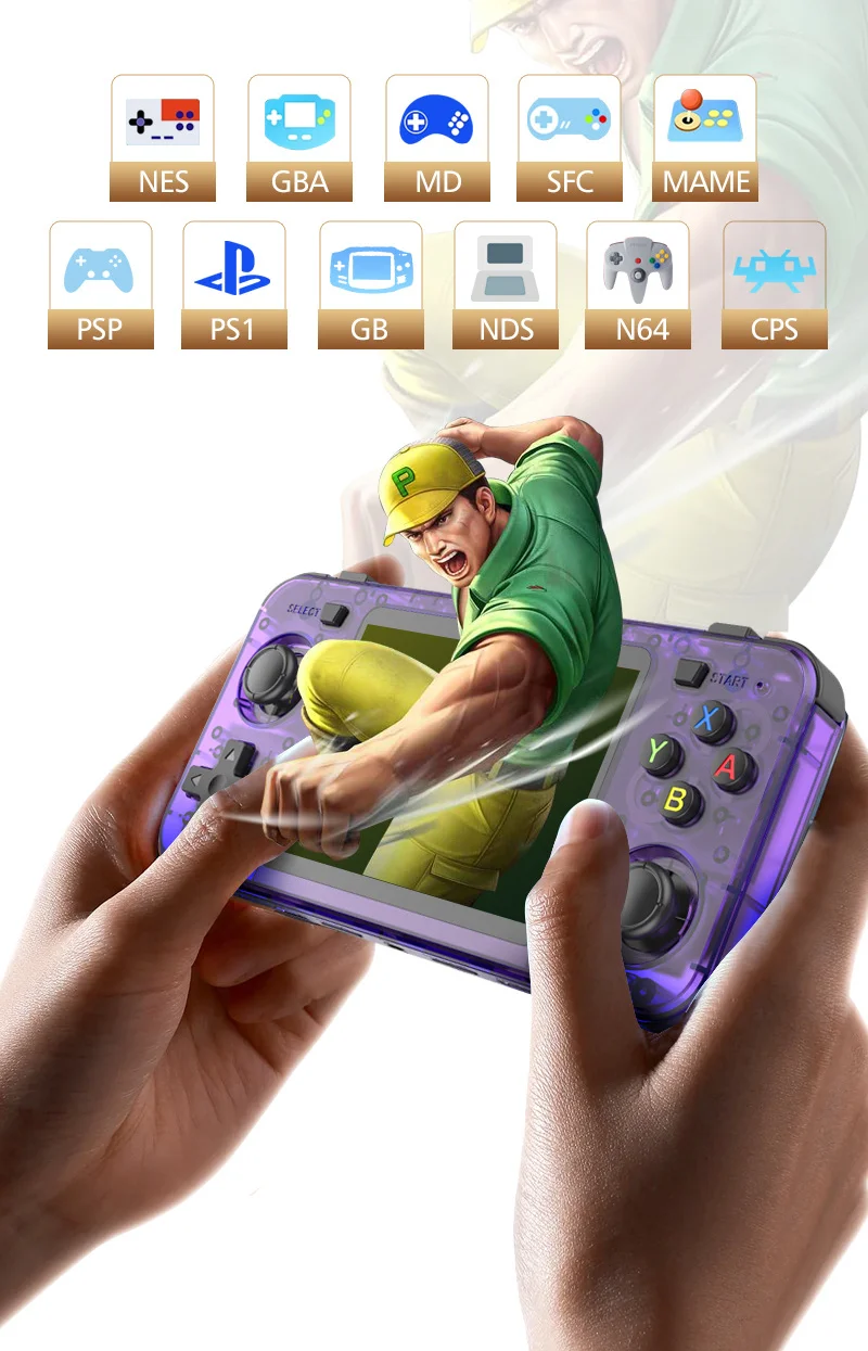 Goditi la riproduzione prolungata di 6-7 ore con R36H, dotato di schermo IPS full-view da 3,5 pollici con risoluzione 680*480 per un gioco coinvolgente