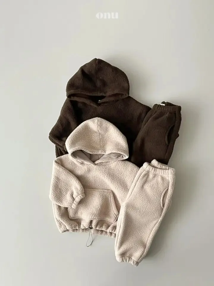 Ragazze Tinta unita Top Inverno Nuovi bambini Maglione con cappuccio in pile per bambini Set in due pezzi Abbigliamento per bambini Ragazze Bambini Boutique di vestiti
